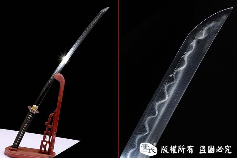 【作品规格】 全长:103cm左右,柄长:26cm,刃长:72cm,刃宽:3.2cm,刃厚:0.7cm,重量:不带鞘1.0kg左右,带鞘1.3kg左右。