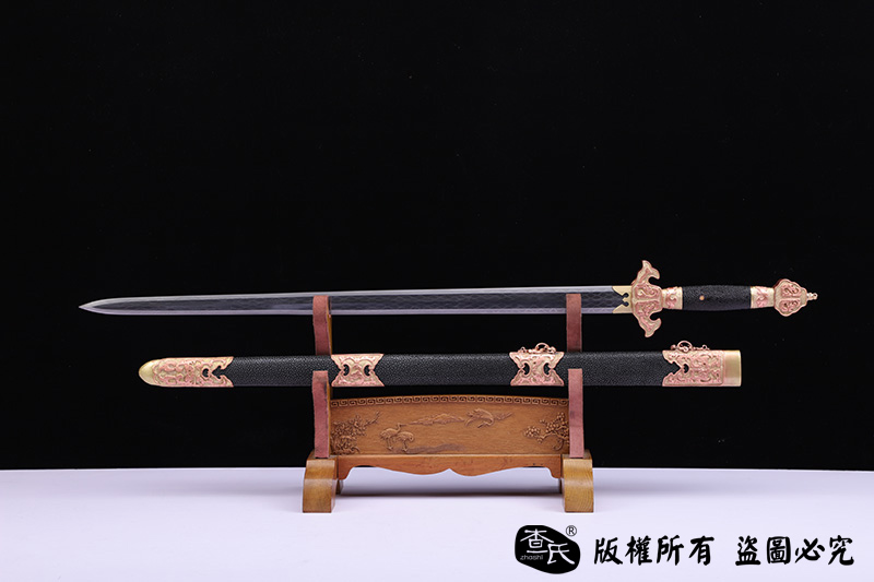 【作品规格】 全长:106cm左右,柄长:20cm,刃长:77cm,刃宽:3.8cm,刃厚:0.8cm,重量:不带鞘1.3kg左右,带鞘2.1kg左右。