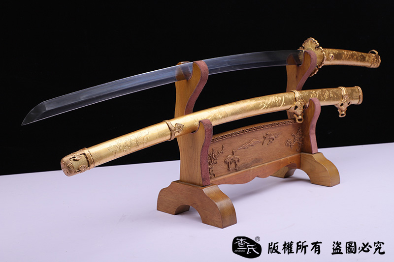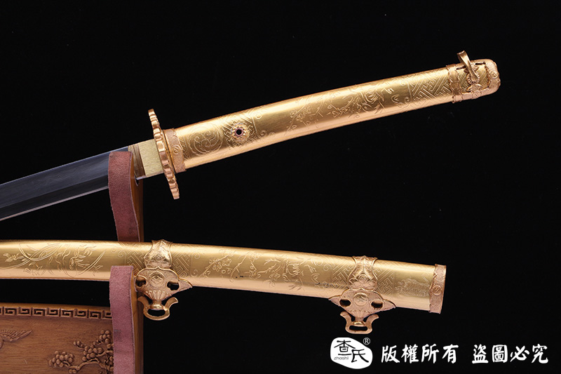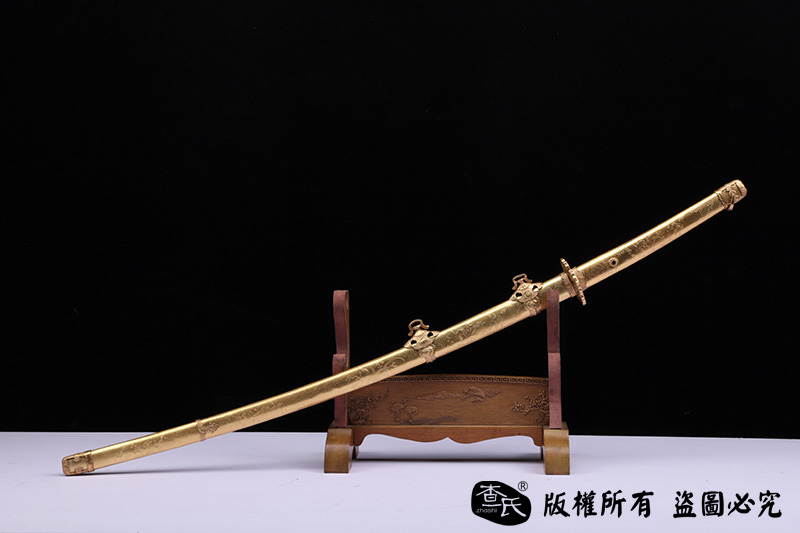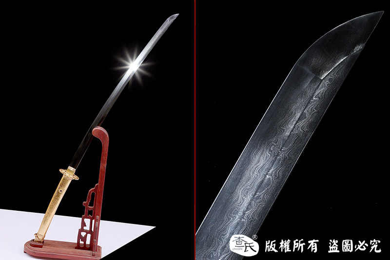 【作品简介】 本店商品均实物拍摄,细节清晰,可仔细比较。 【作品规格】 全长:117.4cm左右,柄长:31.1cm,刃长:72.5cm,刃宽:3.17cm,刃厚:0.78cm,重量:不带鞘1.264kg左右,带鞘1.89kg左右。 【刃材工艺】 【作品鞘材】 【作品装具】 【作品硬度】 HRC 【作品柄材】 【作品赠品】 锦盒 架子 证书 【其他事项】 手工产品,重量尺寸稍有误差,请以实物为准。 赠品里面的架子并不是图上的展示的架子,图片架子另外加180。