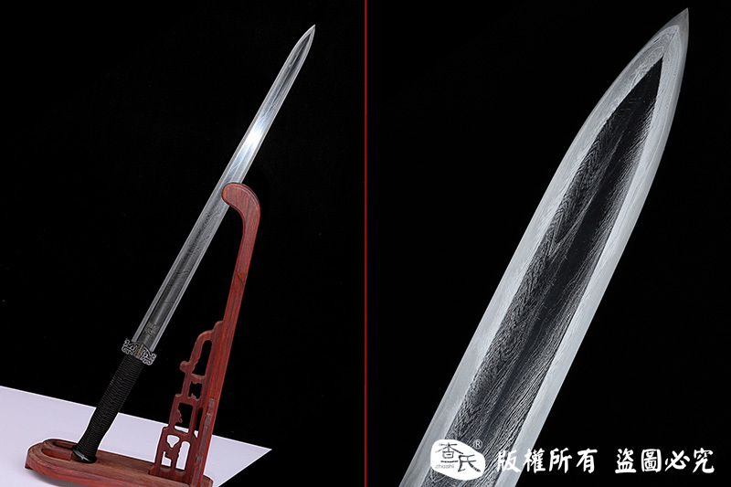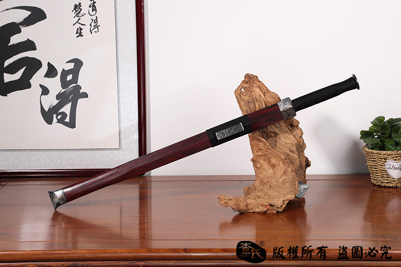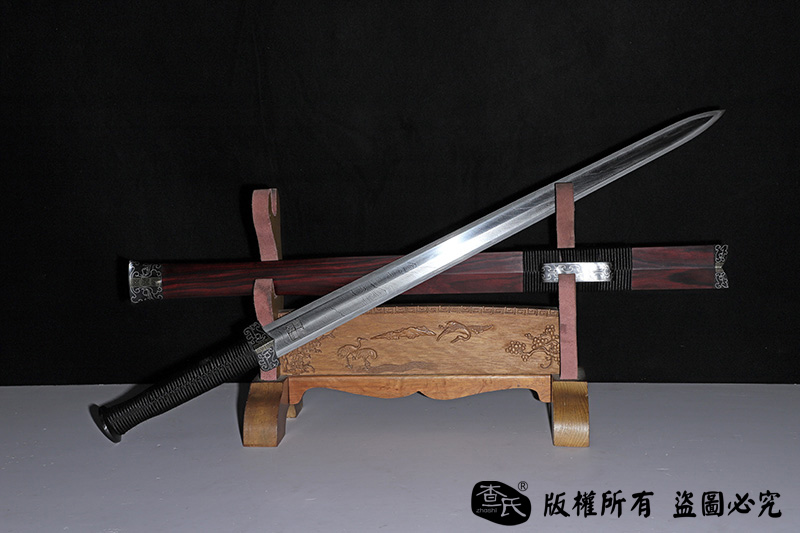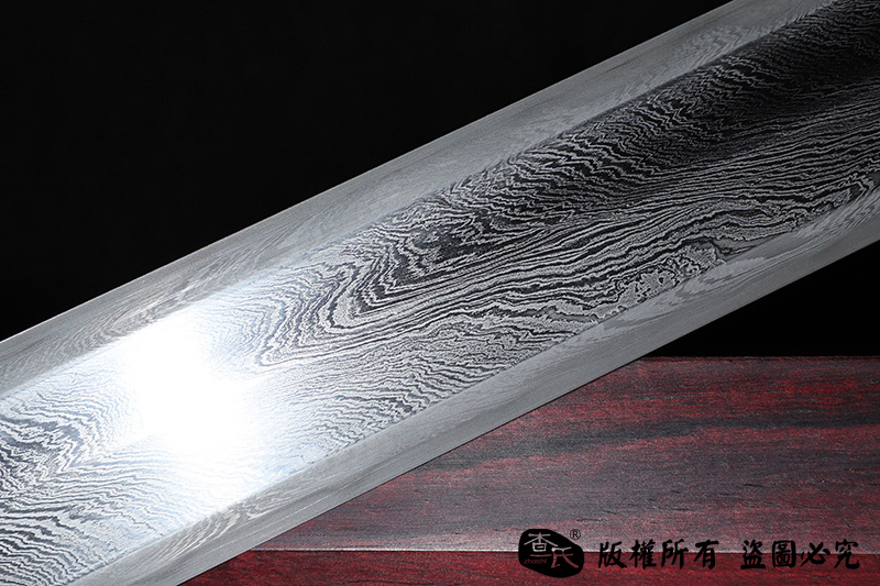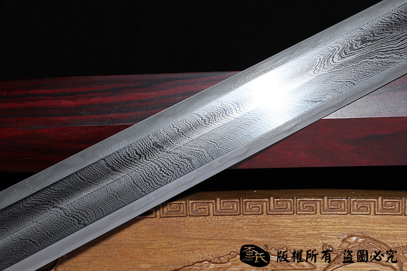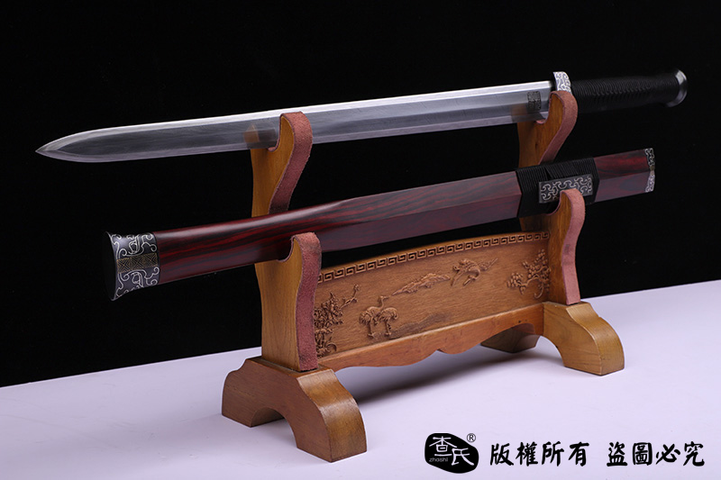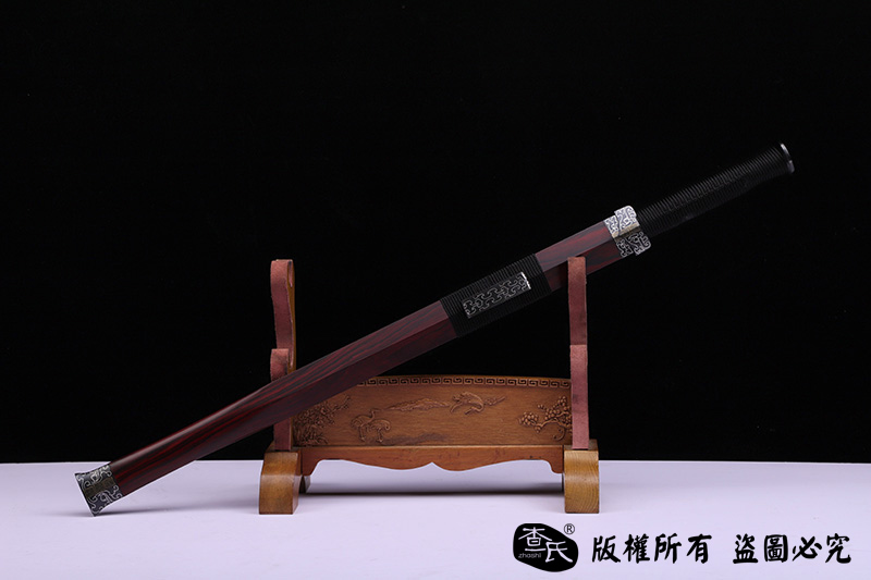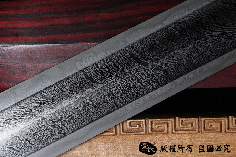 【作品规格】 全长:89cm左右,柄长:19cm,刃长:59cm,刃宽:4cm,刃厚:0.8cm,重量:不带鞘1.0kg左右,带鞘1.5kg左右。