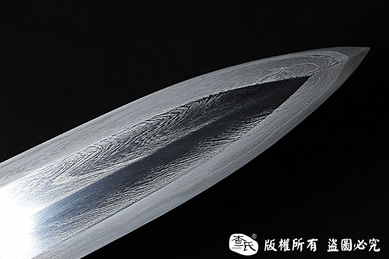 【刃材工艺】 禾字号自家秘制锻造,古法热处理,手工精细磨,锻造纹路犹如闪电一样,细腻,漂亮,古法三枚合工艺,刚柔并济,是一把可遇不可求的好作品,根部刻字:查长伟制