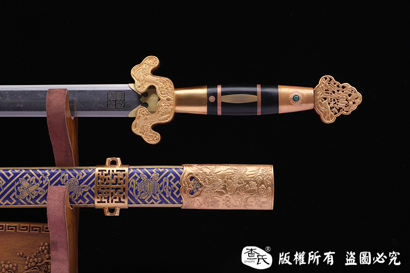 【作品鞘材】 全铜手工雕刻+木芯,金属全铜鞘寿命长,可以传百世,是传家之宝的不错选择