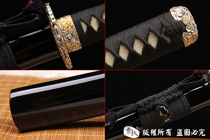 【作品规格】 全长:103cm左右,柄长:26cm,刃长:72cm,刃宽:3.2cm,刃厚:0.7cm,重量:不带鞘1.1kg左右,带鞘1.4kg左右。