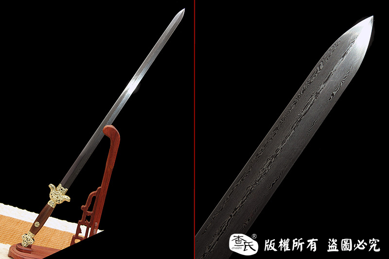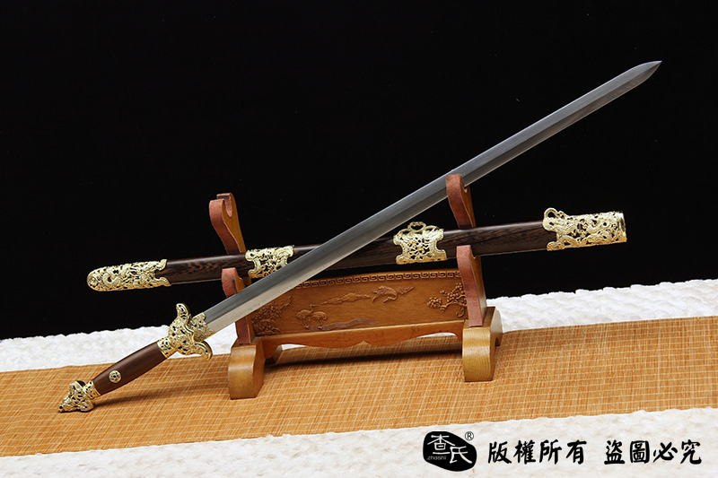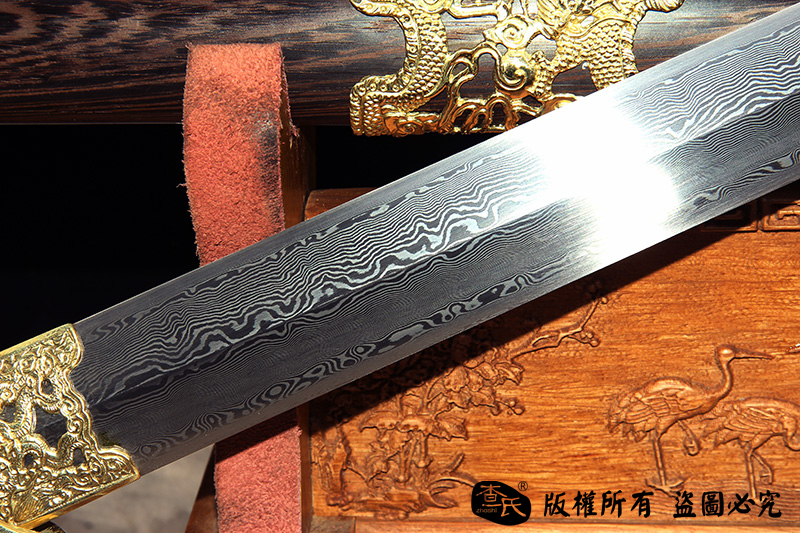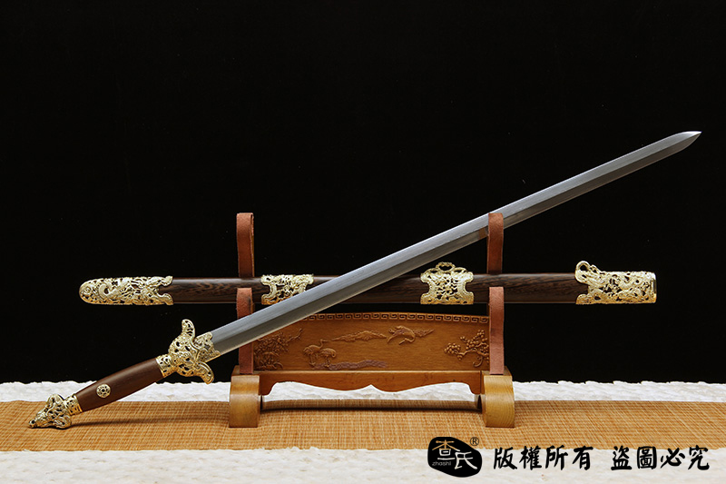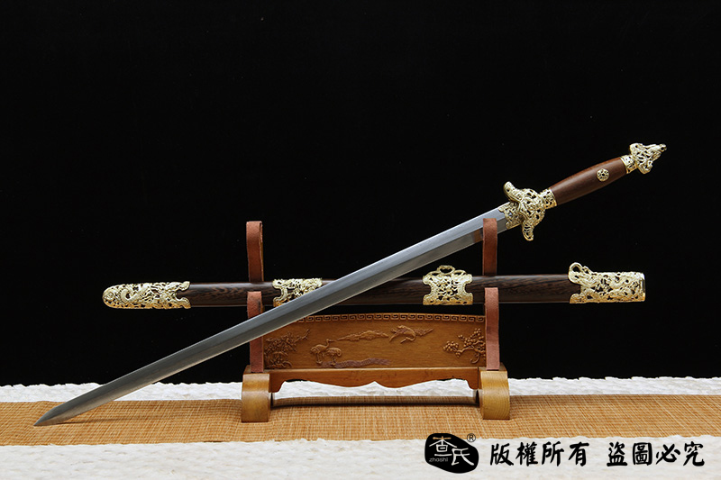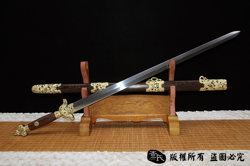 【作品规格】 全长:103cm左右,柄长:21cm,刃长:77cm,刃宽:3.5cm,刃厚:0.9cm,重量:不带鞘1.1kg左右,带鞘1.8kg左右。