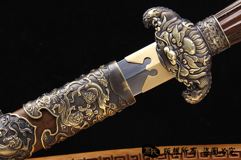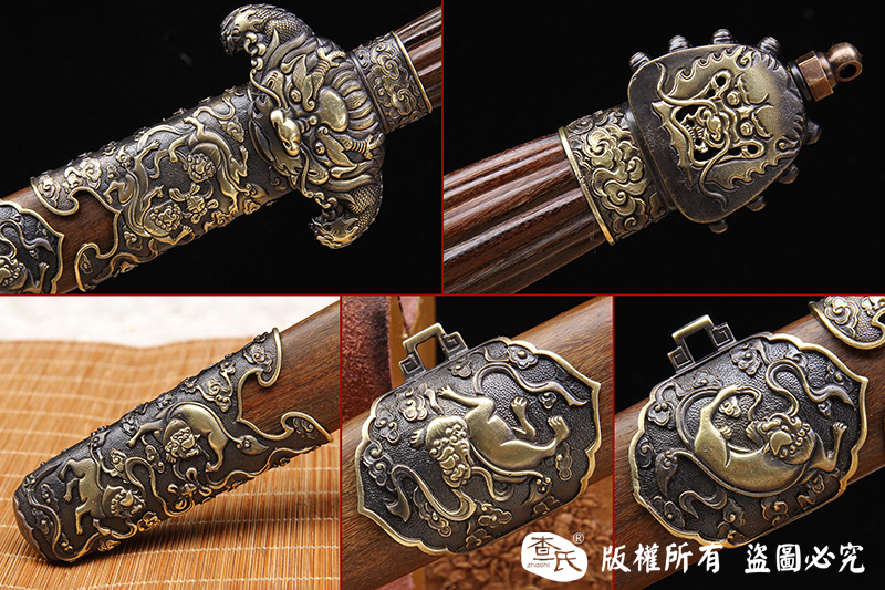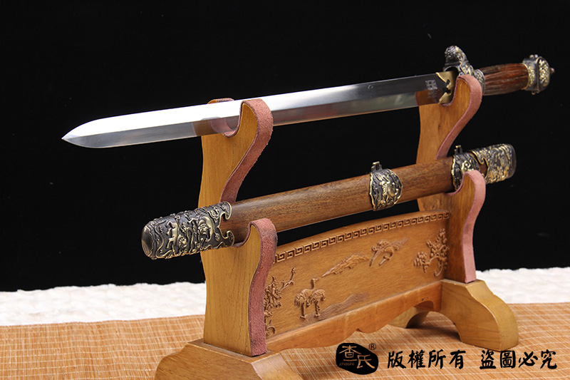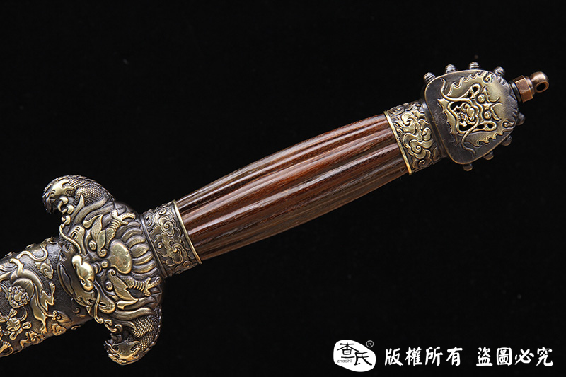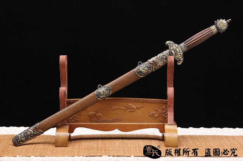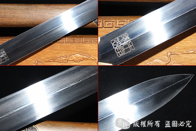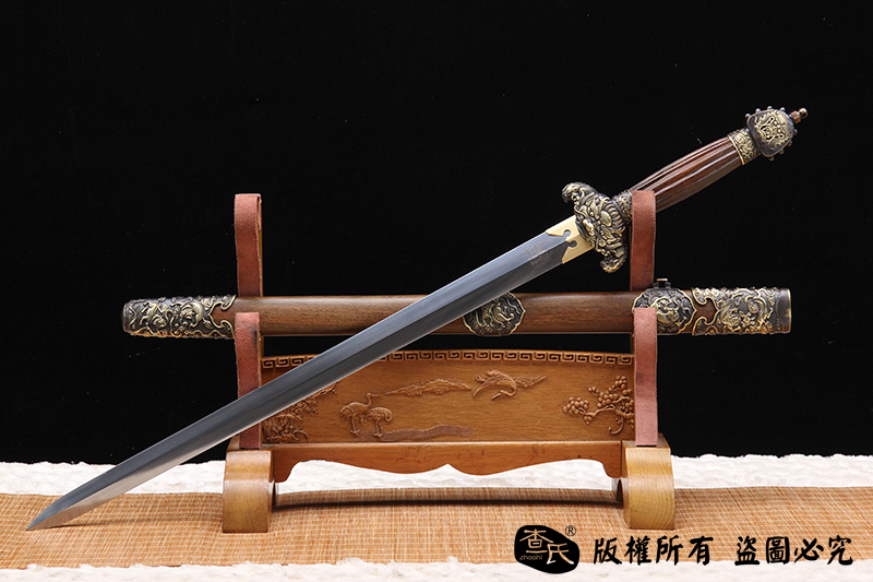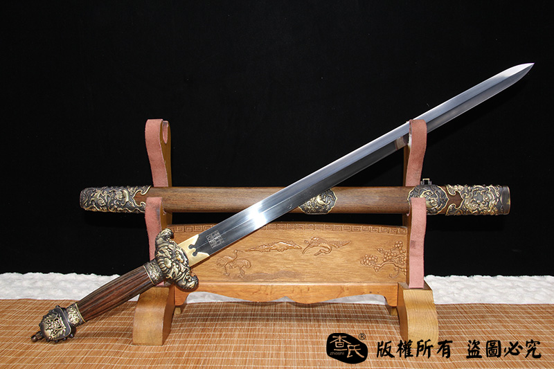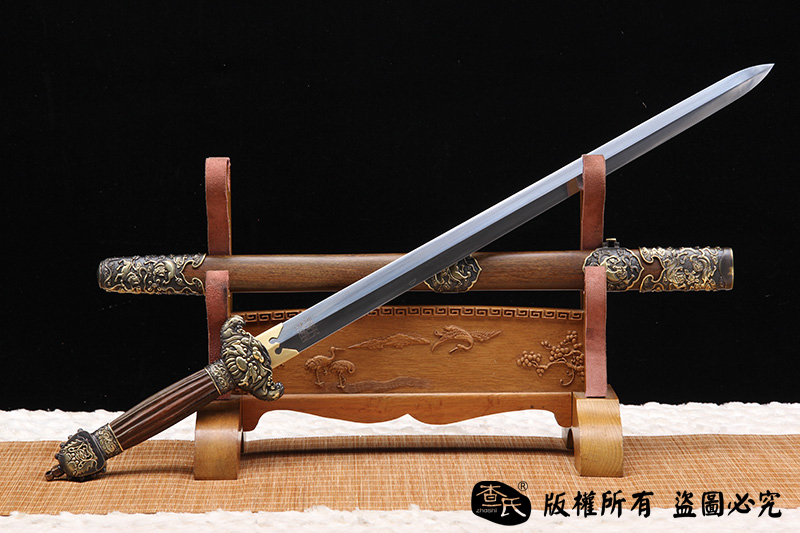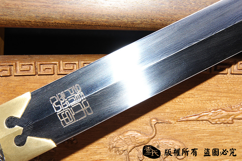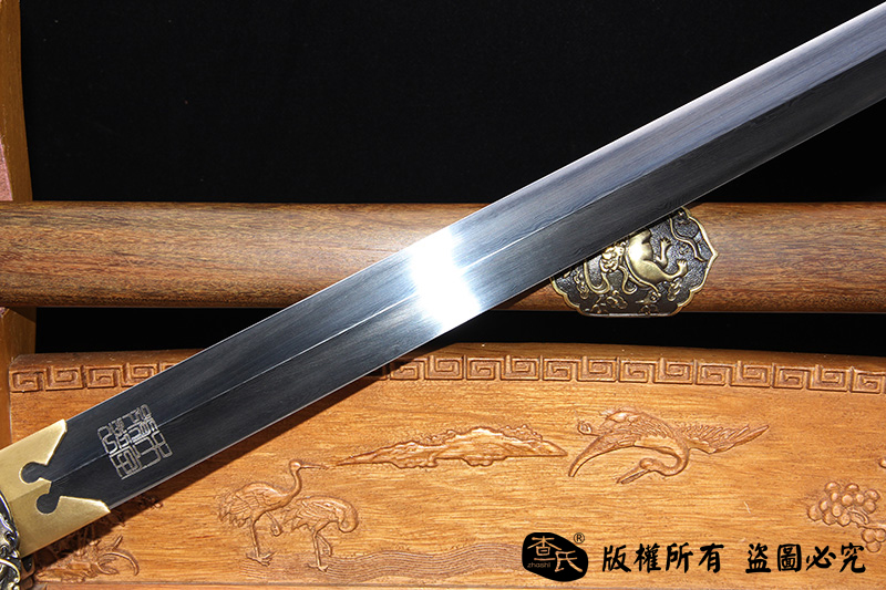 【作品规格】 全长:80cm左右,柄长:18cm,刃长:55cm,刃宽:3.1cm,刃厚:0.8cm,重量:不带鞘0.8kg左右,带鞘1.3kg左右。