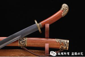 【作品规格】 全长:75cm左右,柄长:18cm,刃长:51cm,刃宽:3.6cm,刃厚:0.8cm,重量:不带鞘0.9kg左右,带鞘1.6kg左右。