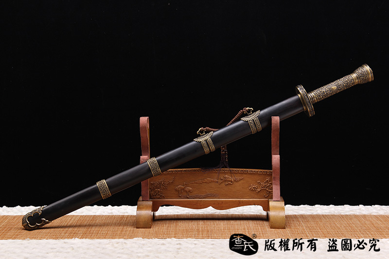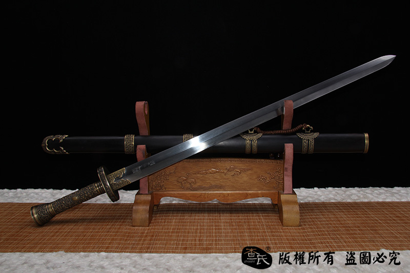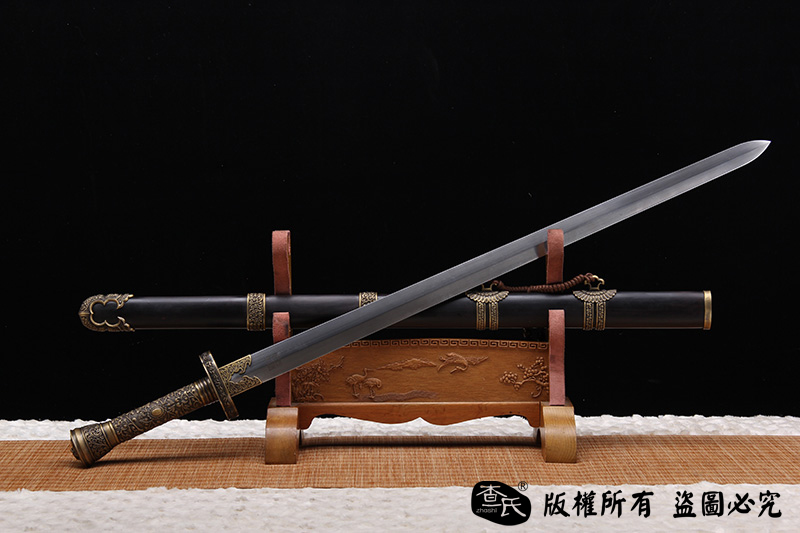 【作品规格】 全长:100cm左右,柄长:19cm,刃长:77cm,刃宽:4.0cm,刃厚:0.8cm,重量:不带鞘1.4kg左右,带鞘2.3kg左右。