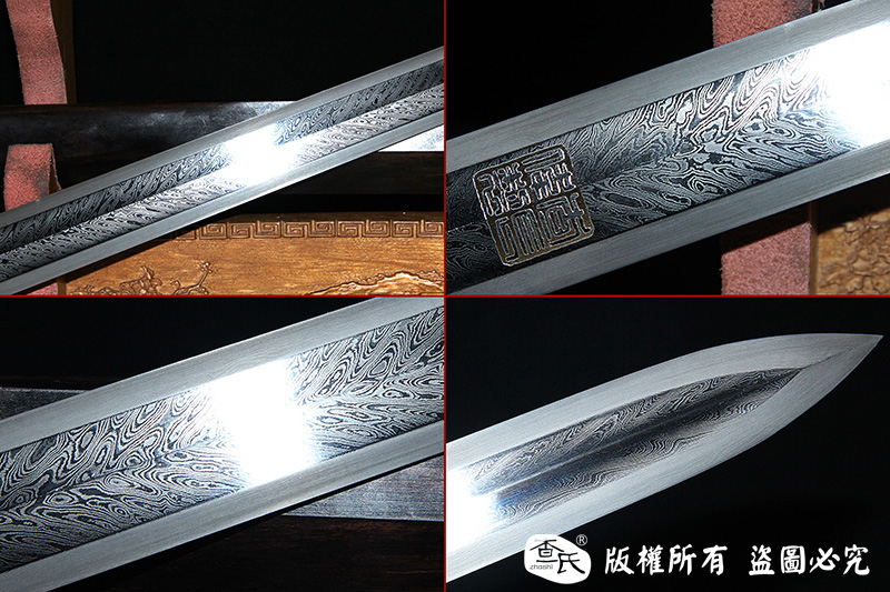 【刃材工艺】 禾字号独家旋焊孔雀纹技法锻造,全手工锻造,古法七星井水淬火,采用亮石手工精细研磨,古法热处理