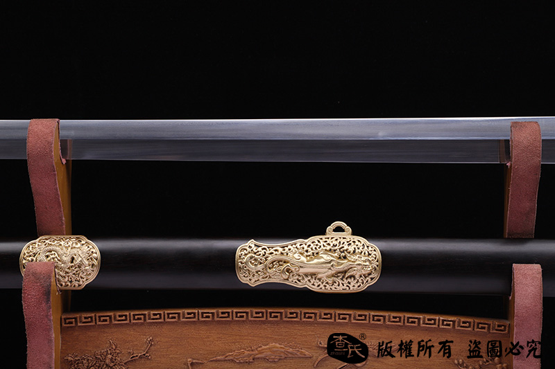 【作品规格】 全长:103cm左右,柄长:20cm,刃长:77cm,刃宽:3.5cm,刃厚:0.8cm,重量:不带鞘1.1kg左右,带鞘1.9kg左右。