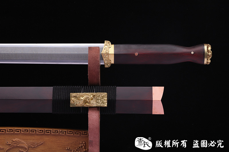 【作品规格】 全长:76cm左右,柄长:18cm,刃长:55cm,刃宽:3.7cm,刃厚:0.7cm,重量:不带鞘0.8kg左右,带鞘1.2kg左右。