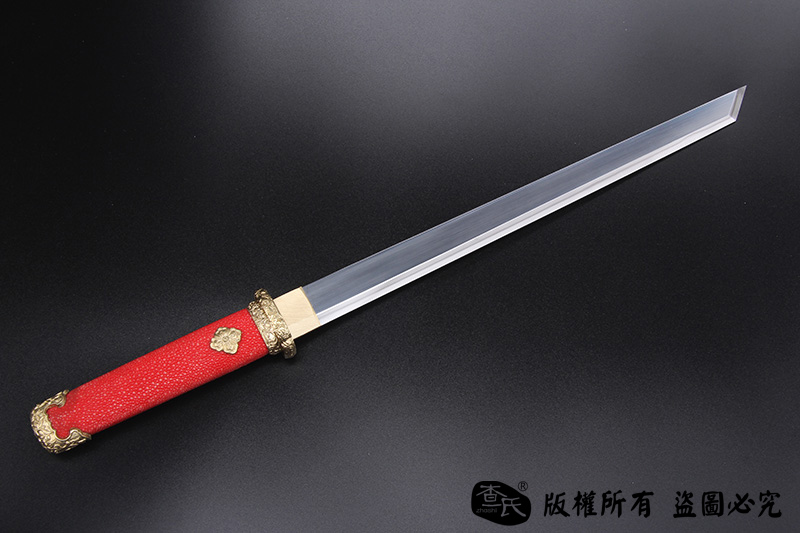 【作品简介】 本店商品均实物拍摄,细节清晰,可仔细比较。 【作品规格】 全长:54.2cm左右,柄长:15cm,刃长:35.3cm,刃宽:2.78cm,刃厚:0.58cm,重量:不带鞘0.481kg左右,带鞘0.726kg左右。 【刃材工艺】 【作品鞘材】 【作品装具】 【作品硬度】 HRC 【作品柄材】 【作品赠品】 锦盒 架子 证书 【其他事项】 手工产品,重量尺寸稍有误差,请以实物为准。 赠品里面的架子并不是图上的展示的架子,图片架子另外加180。