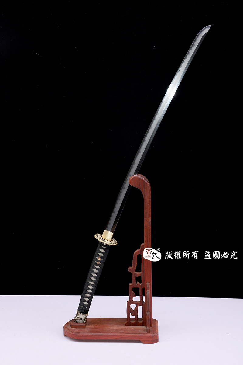 【作品规格】 全长:108cm左右,柄长:30cm,刃长:72cm,刃宽:3.2cm,刃厚:0.7cm,重量:不带鞘1.1kg左右,带鞘1.6kg左右。
