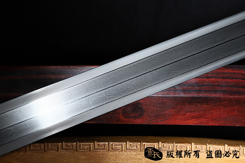 【作品规格】 全长:108cm左右,柄长:26cm,刃长:76cm,刃宽:3.6cm,刃厚:0.8cm,重量:不带鞘1.1kg左右,带鞘1.7kg左右。