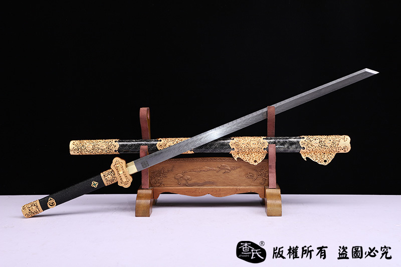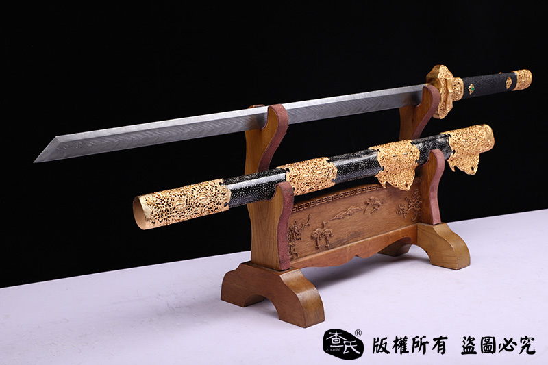 【作品规格】 全长:105cm左右,柄长:26cm,刃长:73cm,刃宽:3.2cm,刃厚:0.7cm,重量:不带鞘1.3kg左右,带鞘2.2kg左右。
