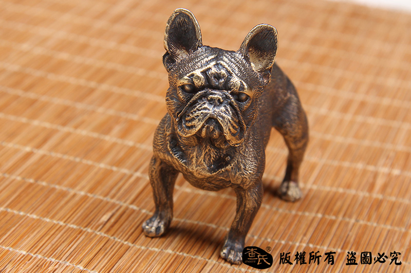 【作品简介】 本店商品均实物拍摄,细节清晰,可仔细比较。 【作品规格】 长:7.3cm左右,宽:3.1cm,高:6.4cm,重量:0.2kg左右, 【刃材工艺】 62优质黄铜,实心制作难度极大,因为实心制作收缩比例大,所以成品率极低,市面一般没人敢那么干,是一件非常难得的狗狗摆件,也可以作为茶桌,办公桌的摆件、玩具,茶宠等,还可以作为礼品,收藏品,极有价值和档次-可以传承千年 【作品赠品】 礼盒装 【其他事项】 手工产品,重量尺寸稍有误差,请以实物为准。