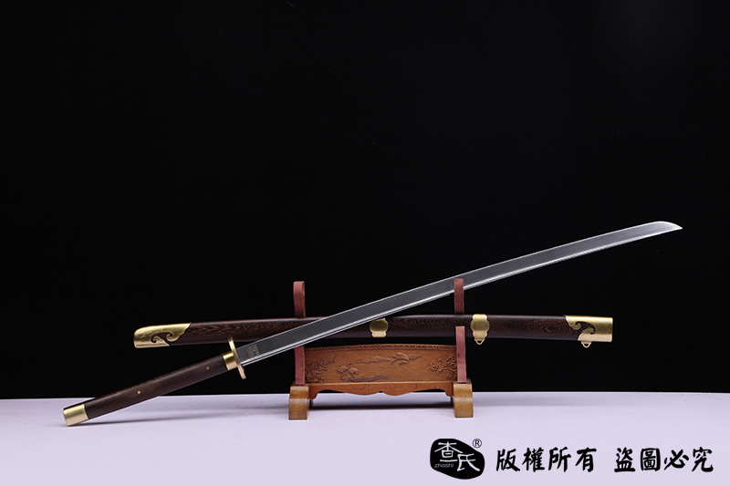 【作品规格】 全长:139cm左右,柄长:36cm,刃长:100cm,刃宽:4cm,刃厚:0.9cm,重量:不带鞘1.2kg左右,带鞘2.0kg左右。