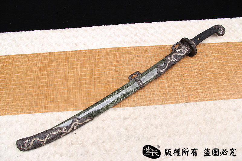 【作品规格】 全长:103cm左右,柄长:22cm,刃长:71cm,刃宽:3.8cm,刃厚:0.8cm,重量:不带鞘1.3kg左右,带鞘2.8kg左右。