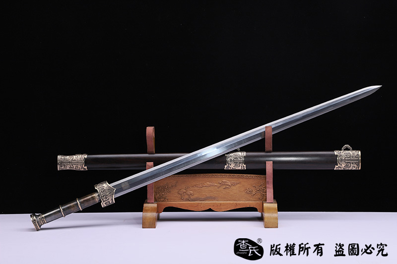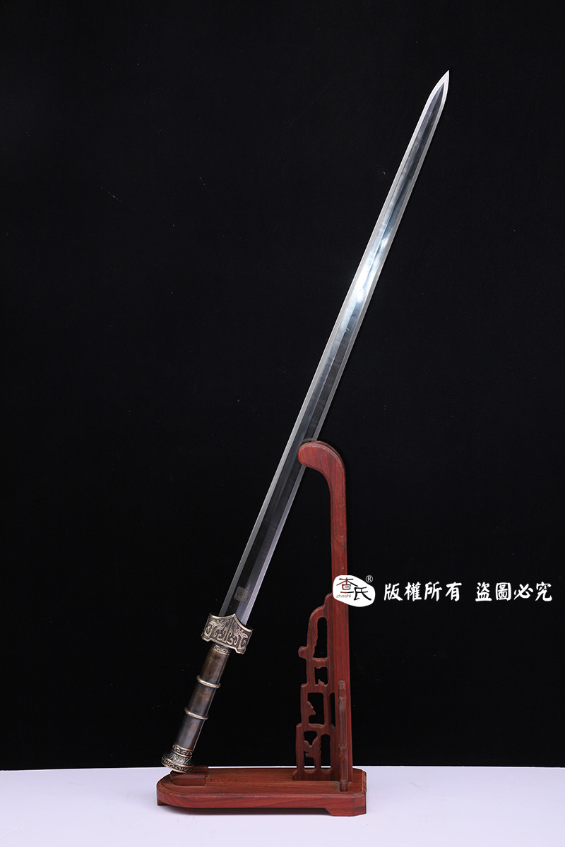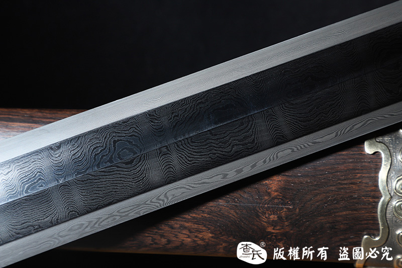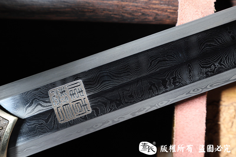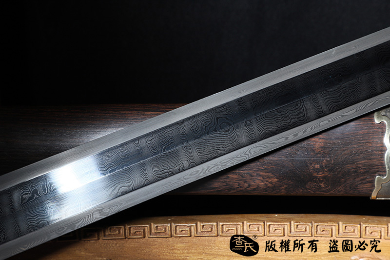 【刃材工艺】 全手工古法锻造百炼钢加宽加大八面汉剑,古法热处理,手工精细磨+禾字号分色研磨,根部刻字:查长伟制