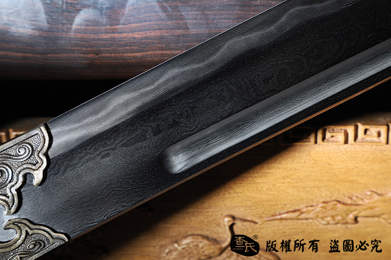 【作品规格】 全长:82cm左右,柄长:20cm,刃长:59cm,刃宽:3.8cm,刃厚:0.6cm,重量:不带鞘1.2kg左右,带鞘1.8kg左右。
