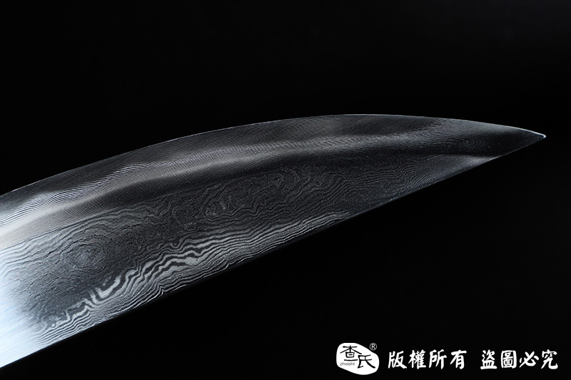 【刃材工艺】 禾字号百炼钢手工打造,古法敷土烧刃热处理,全手工开槽,手工精细磨,根部刻字:查长伟制
