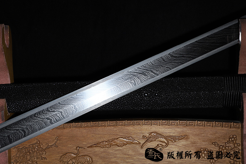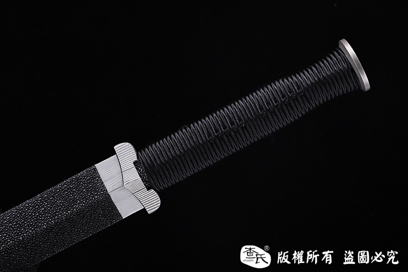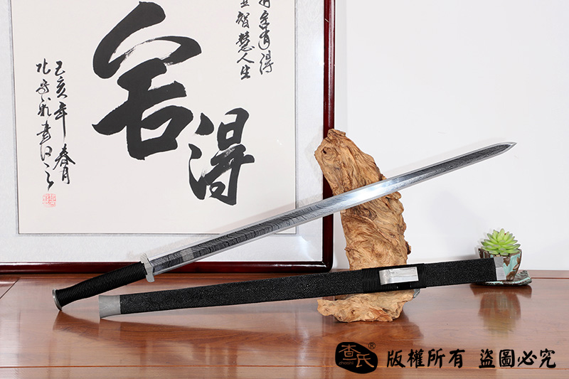 【作品规格】 全长:99cm左右,柄长:19cm,刃长:77cm,刃宽:3.7cm,刃厚:0.7cm,重量:不带鞘1.1kg左右,带鞘1.6kg左右。