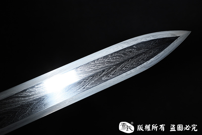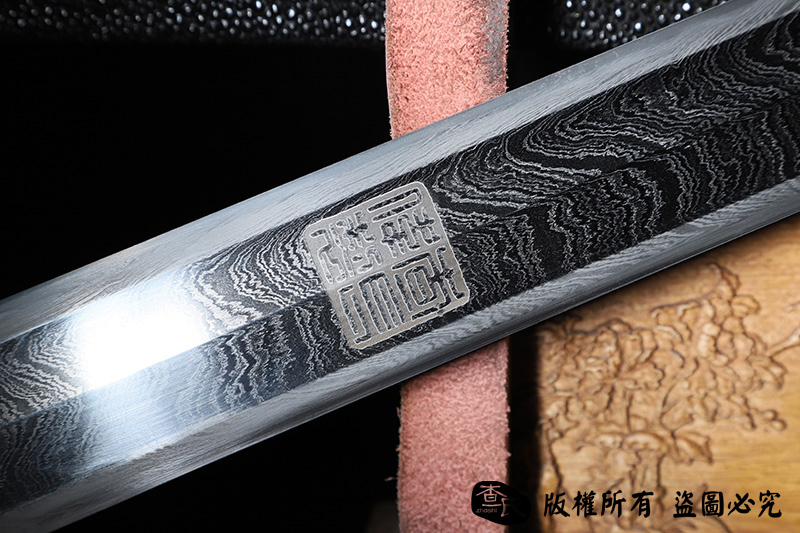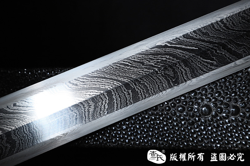 【刃材工艺】 禾字号秘制传承古法锻造水墨天梯纹+古法夹钢,刚柔并济,古法热处理,手工精细研磨,值得收藏,根部刻字:查长伟制