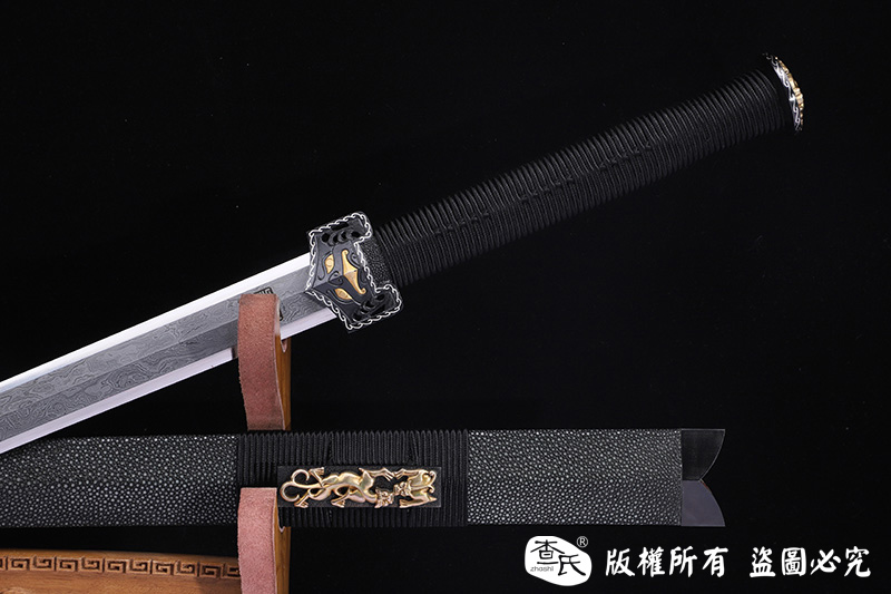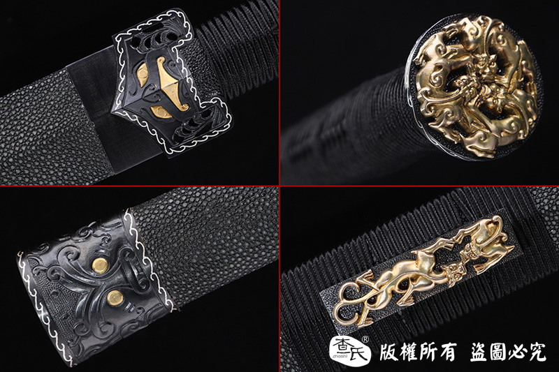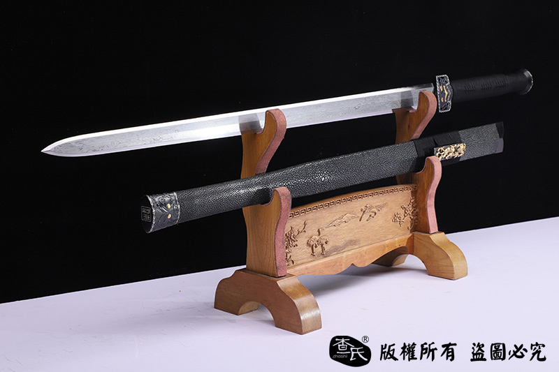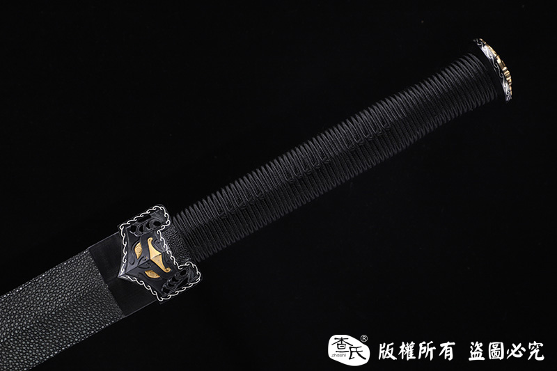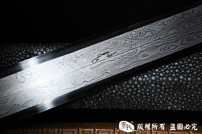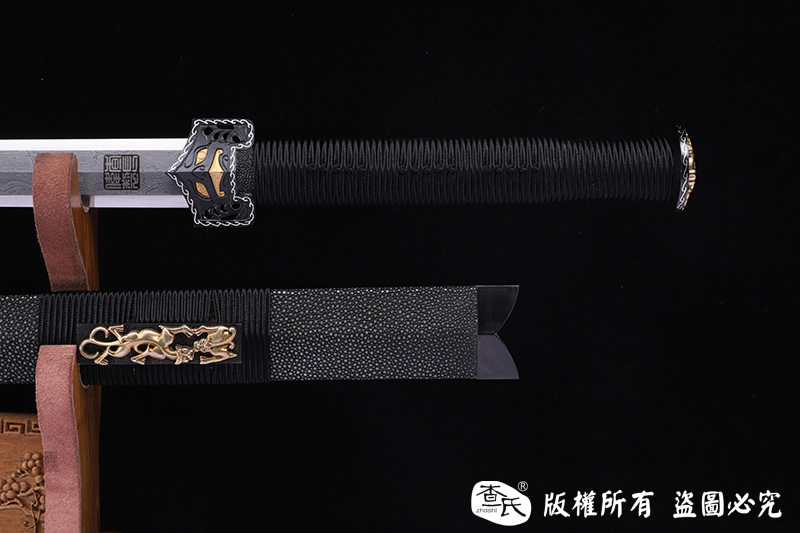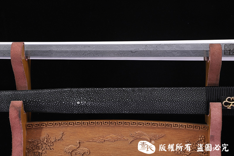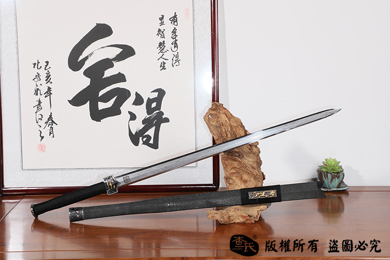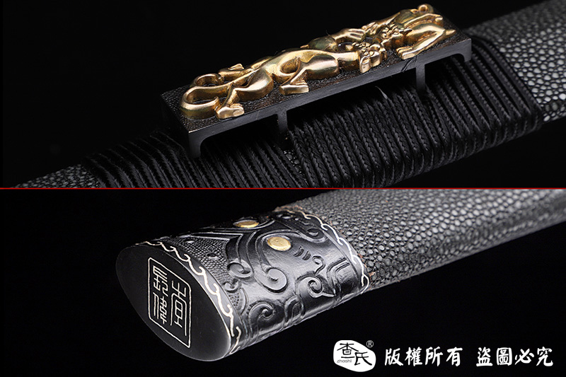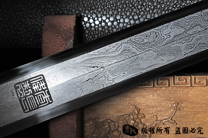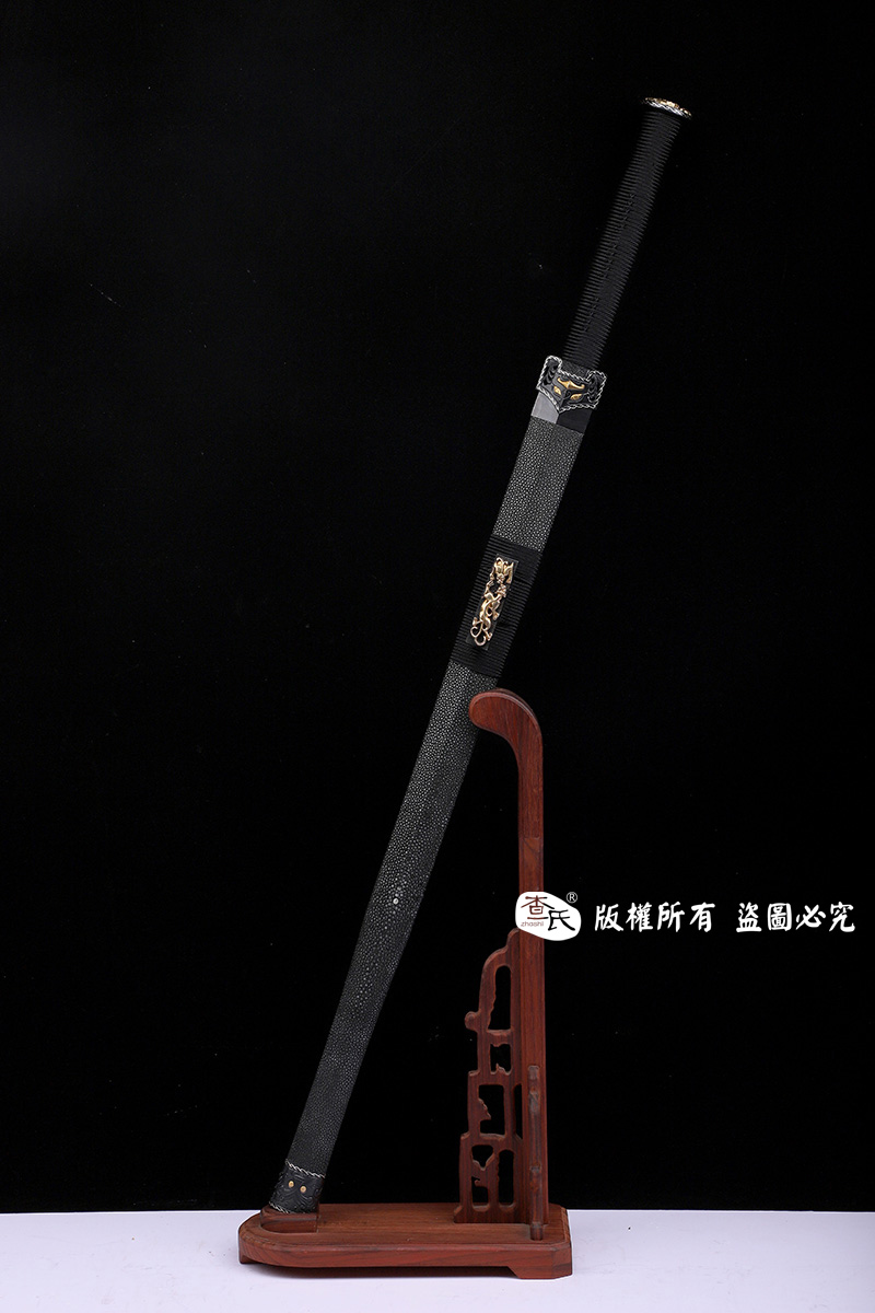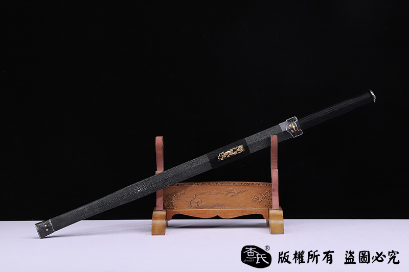 【作品规格】 全长:107cm左右,柄长:25cm,刃长:77cm,刃宽:3.8cm,刃厚:0.8cm,重量:不带鞘1.3kg左右,带鞘2.0kg左右。
