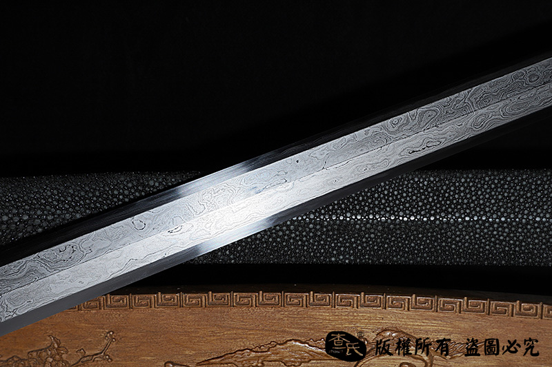 【刃材工艺】 陨铁高难度手工锻造(禾字号代表性工艺)+古法夹钢(工艺难上加难),做到陨铁剑也能刚柔并济。手工精细磨,陨铁打造出来的纹路成色效果也是地球铁无法代替的,魅力非凡。陨铁自古有能量传说,陨铁降落寓意上天赐予圣物,提炼成剑,意义非凡,传家之宝首选。