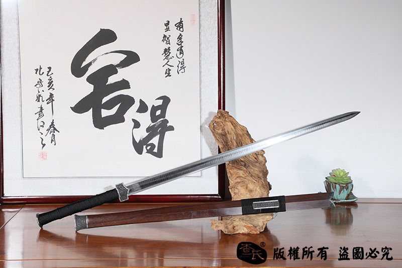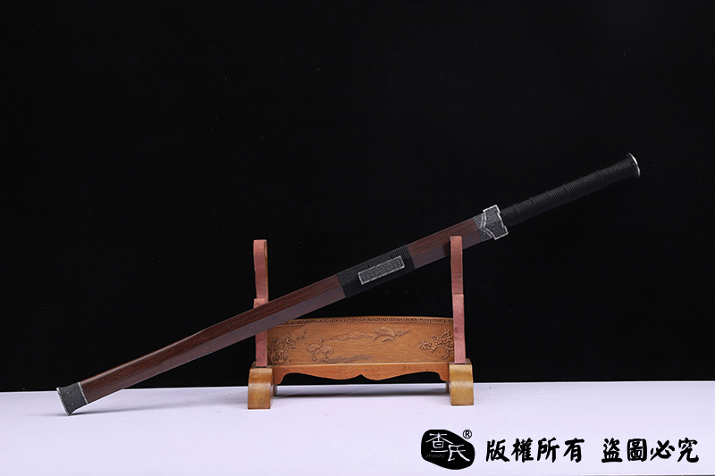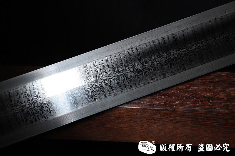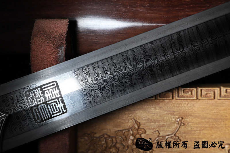 【作品规格】 全长:107cm左右,柄长:26cm,刃长:77cm,刃宽:3.6cm,刃厚:0.7cm,重量:不带鞘1.1kg左右,带鞘1.6kg左右。