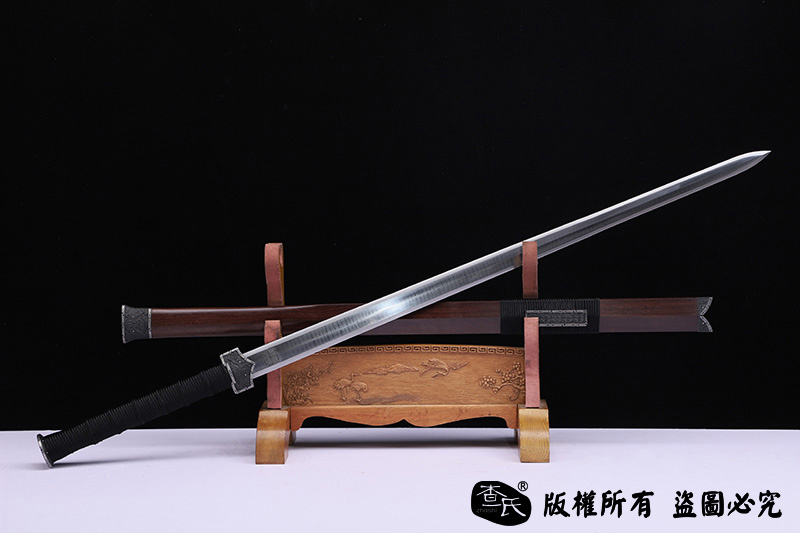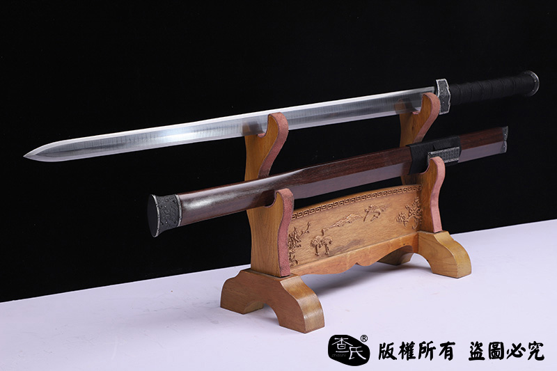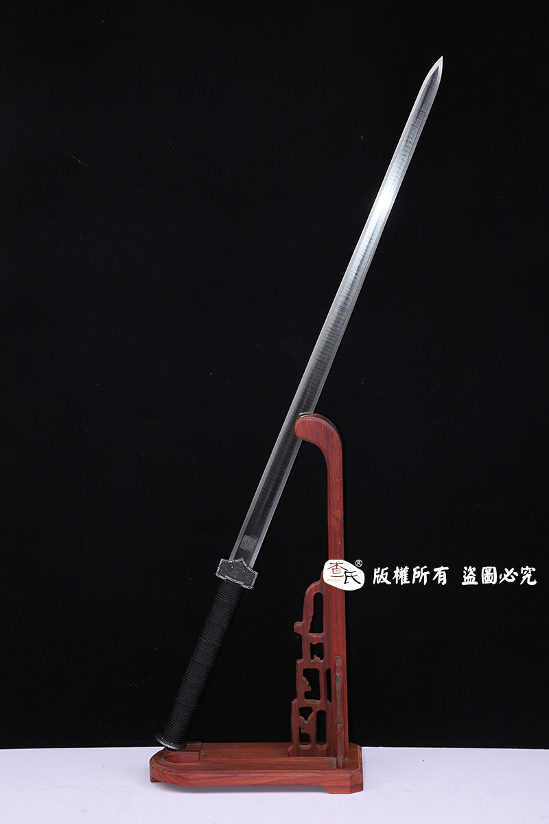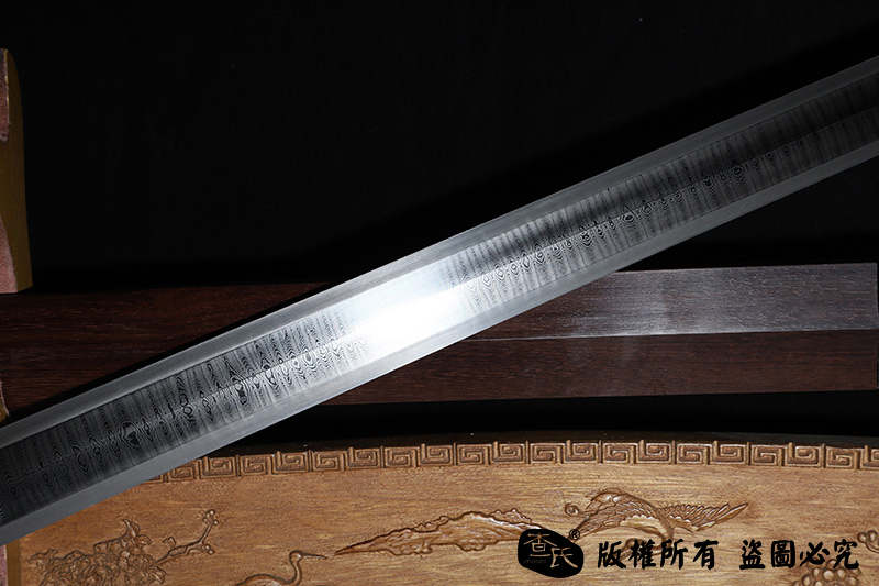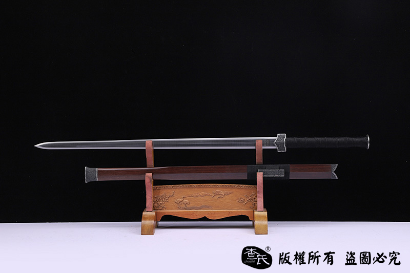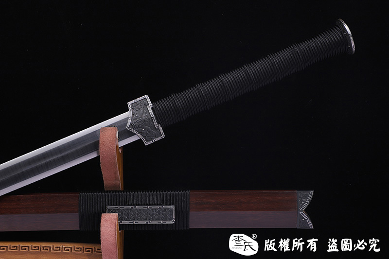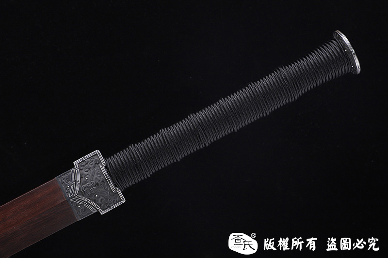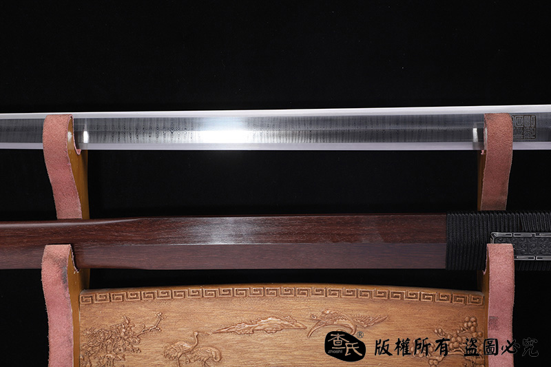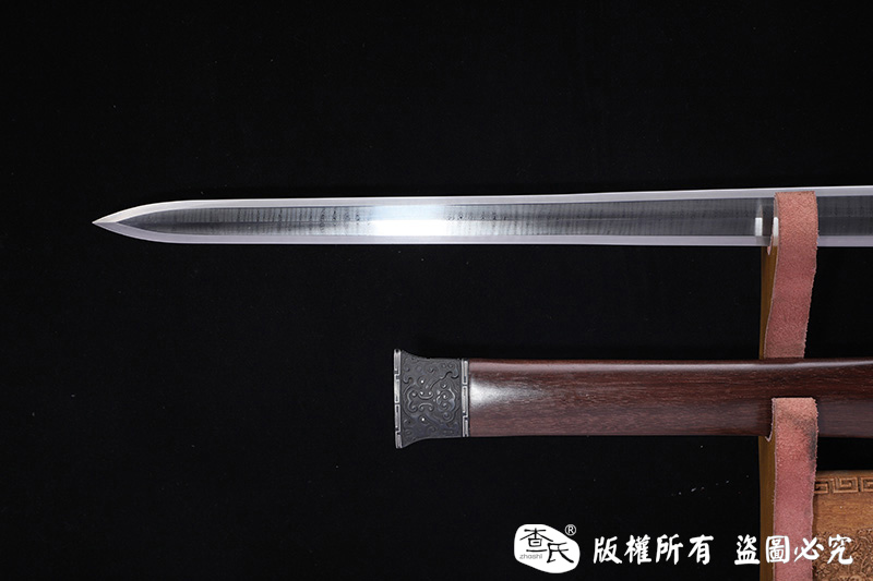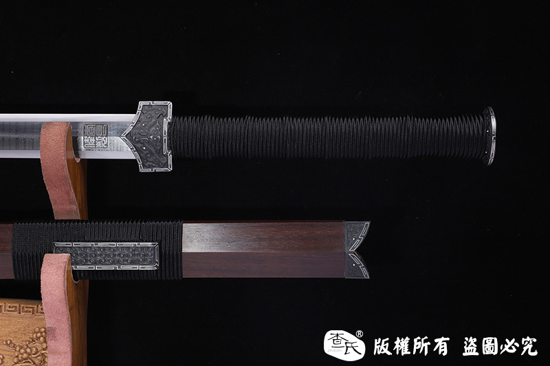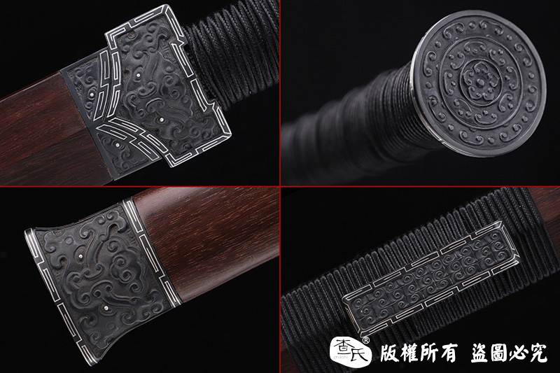 【作品装具】 铁装错银手工雕刻,制作工艺难,历史地位高,和铁强度好等元素构成他在剑中上等地位