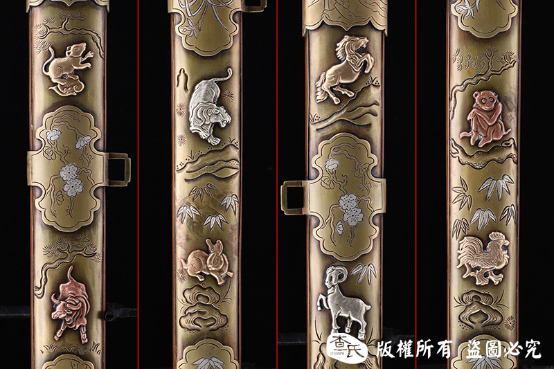 【作品鞘材】 纯铜手工雕刻+古法鎏银 木芯鞘