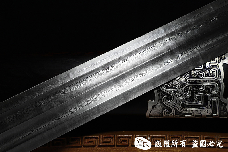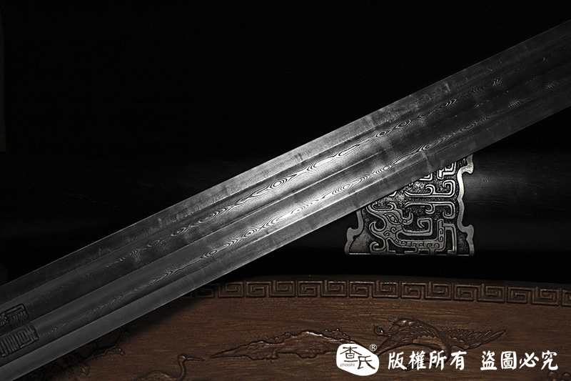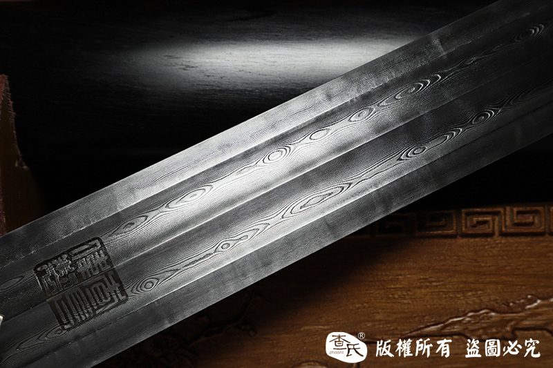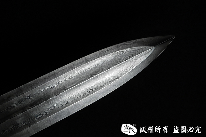 【刃材工艺】 古法手工打造大马士革钢,古法热处理,手工精细磨,花纹成色有层次,漂亮且有收藏价值,根部刻字:查长伟制