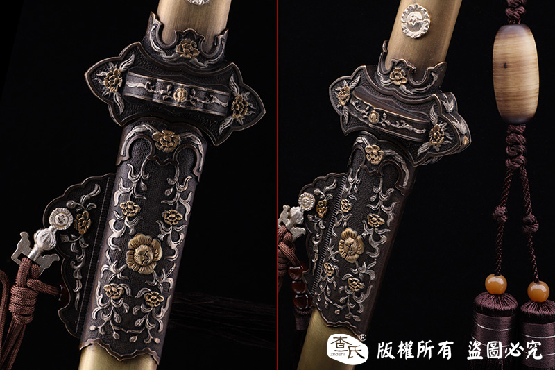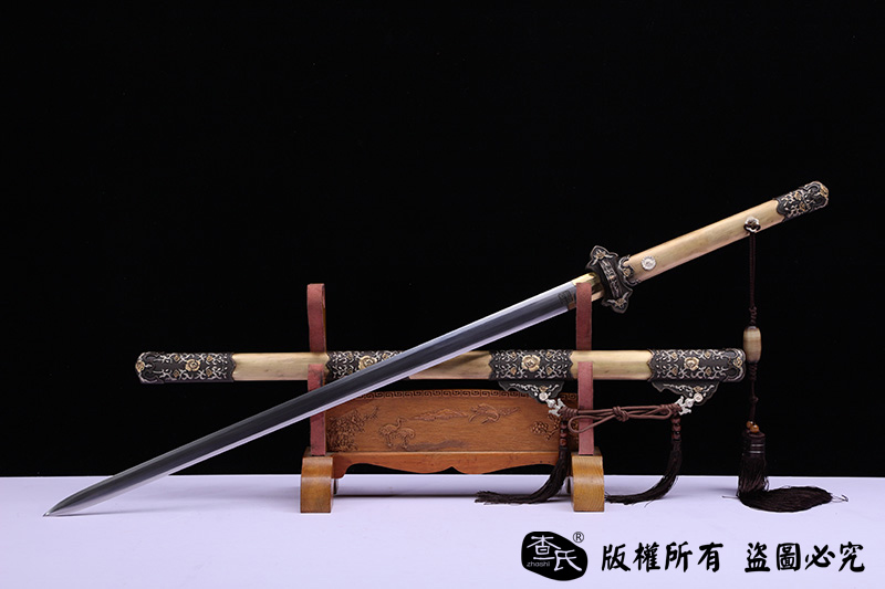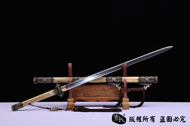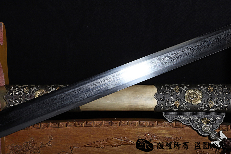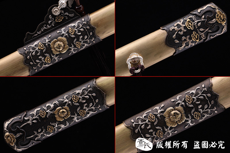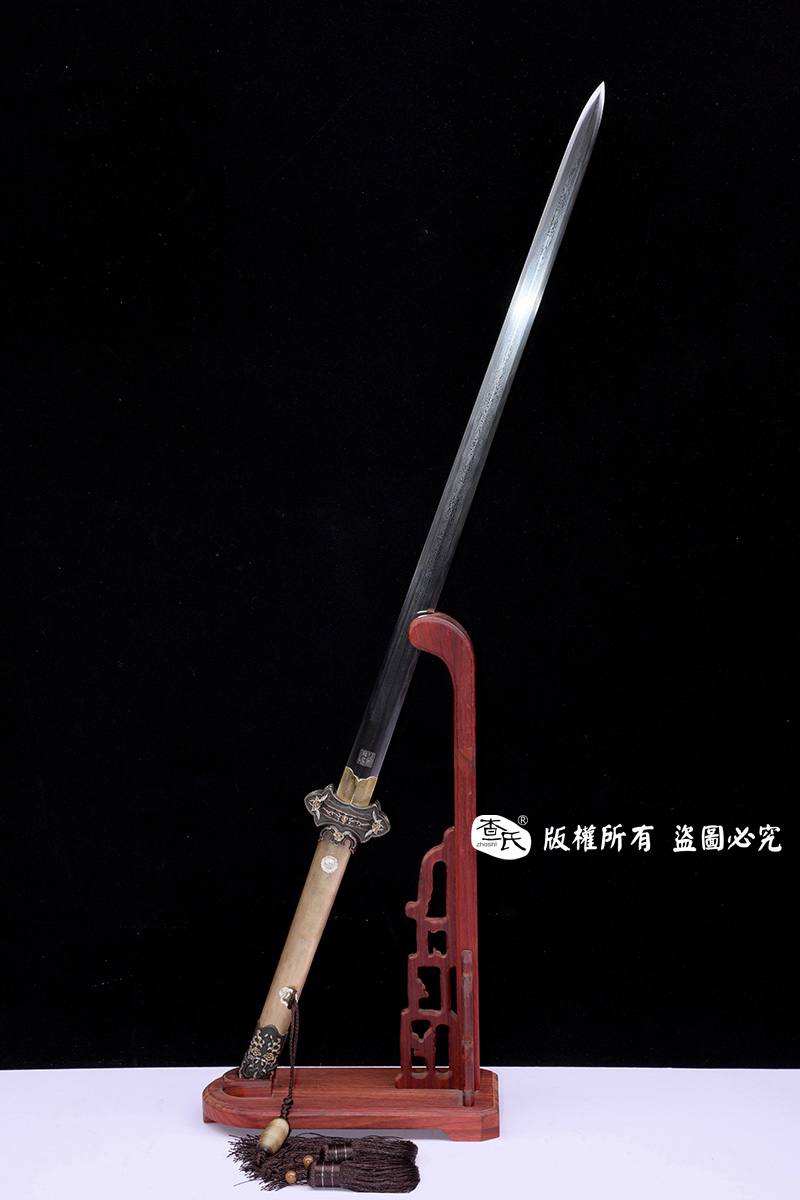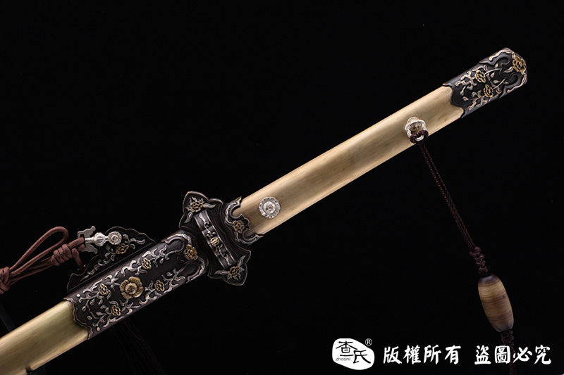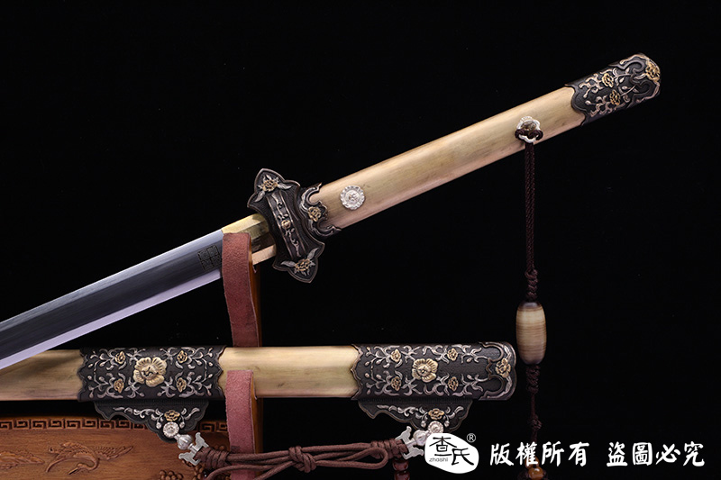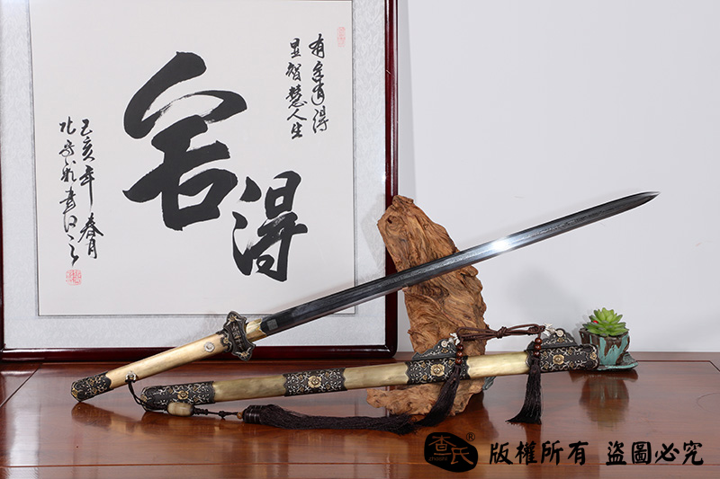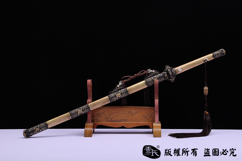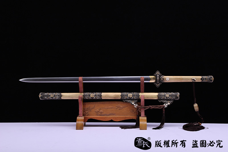 【作品规格】 全长:111cm左右,柄长:28cm,刃长:76cm,刃宽:3.5cm,刃厚:0.7cm,重量:不带鞘1.6kg左右,带鞘2.7kg左右。