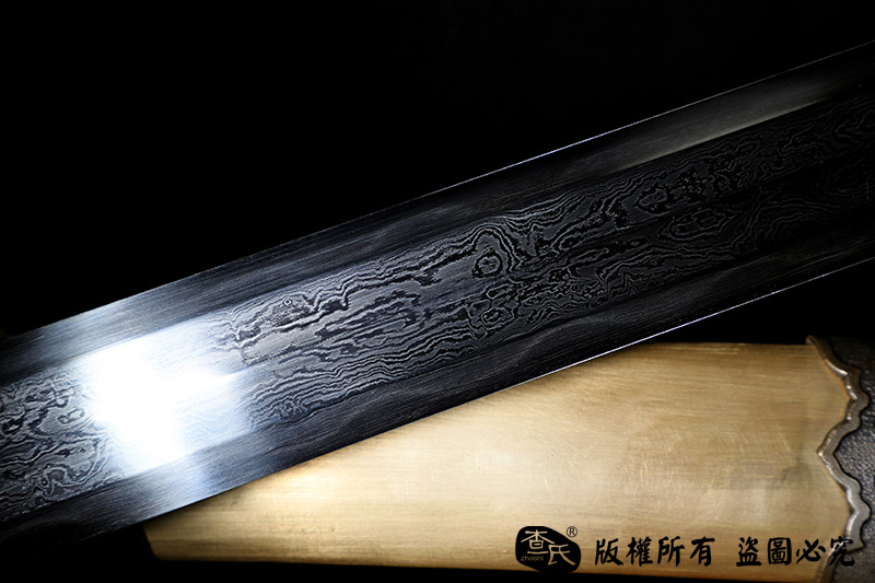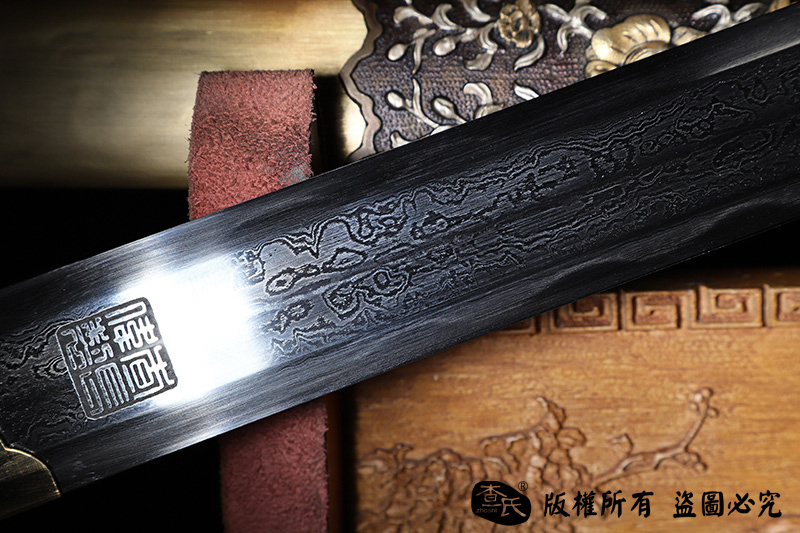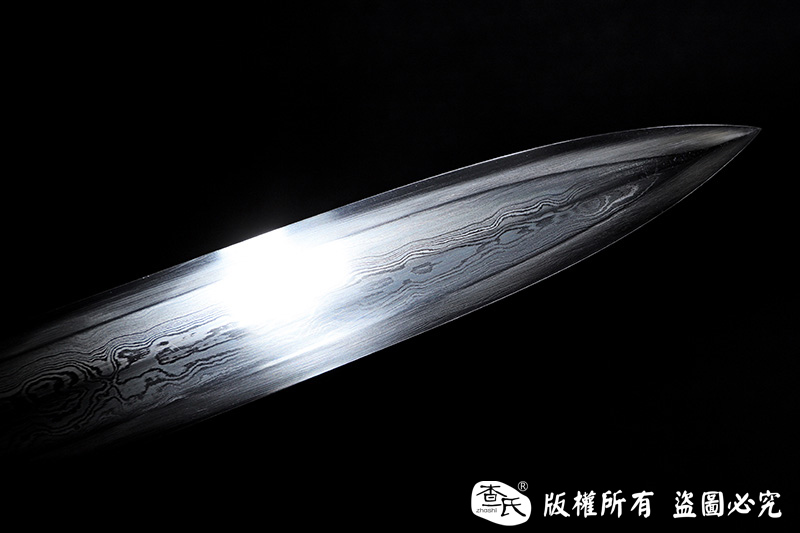 【刃材工艺】 百炼花纹钢手工古法锻造,古法热处理,手工精细磨,花纹成色有层次,漂亮且有收藏价值,根部刻字:查长伟制