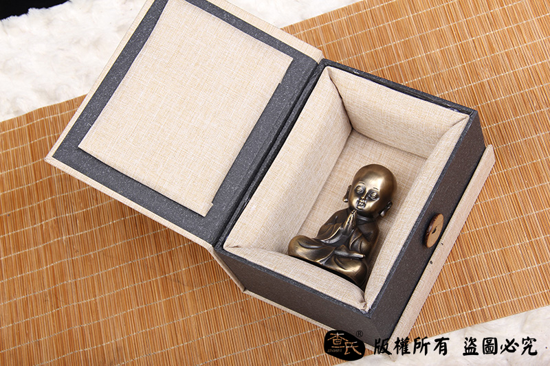 【作品简介】 本店商品均实物拍摄,细节清晰,可仔细比较。 【作品规格】 长:6.1cm左右,宽:5.3cm,高:9.8cm,重量:0.25kg左右。 【工艺】 优质62黄铜手工打造,可以传千年,神情细节到位,做工细致,是很好的摆件,茶宠,玩具,可爱的小和尚人见人爱!大人小孩都喜欢