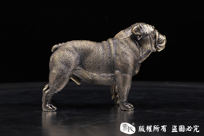 【作品简介】 本店商品均实物拍摄,细节清晰,可仔细比较。 【作品规格】 长:18cm左右,宽:8.6cm,高:12cm,重量:3.4kg左右。 【工艺】 62优质黄铜,实心制作难度极大,铜如果厚于5mm的冷确的时候收缩比例就会很大,何况这个实心达到18厘米,所以成品率极低,市面一般没人敢那么干,是一件非常难得的狗狗摆件,也可以作为茶桌,办公桌的摆件、玩具,镇纸,哑铃等等,还可以作为礼品,收藏品,极有价值和档次-可以传承千年