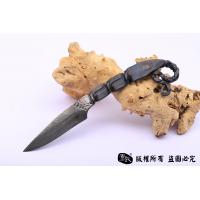 【作品简介】 本店商品均实物拍摄,细节清晰,可仔细比较。 【作品规格】 全长:18.6cm左右,柄长:9.5cm,刃长:7.5cm,刃宽:2.2cm,刃厚:0.4cm,重量:0.09kg左右。 【刃材工艺】 龙泉手工锻造百炼钢一体打造,整个作品布满锻造纹路,硬度好,撬茶实用,样式精美 【作品赠品】 竹盒 证书 【其他事项】 手工产品,重量尺寸稍有误差,请以实物为准。