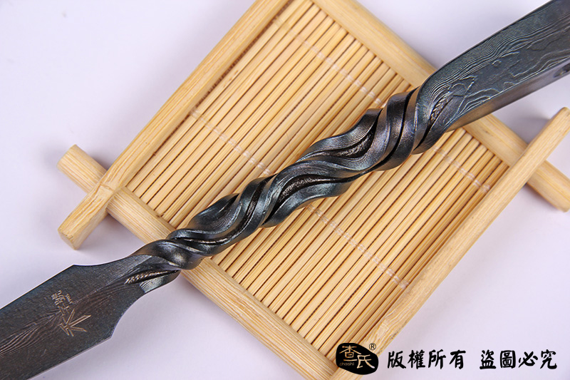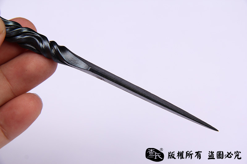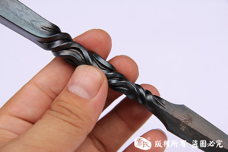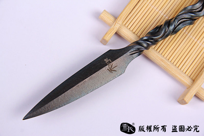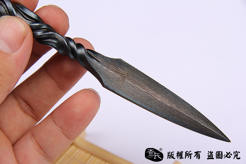 【作品简介】 本店商品均实物拍摄,细节清晰,可仔细比较。 【作品规格】 全长:17cm左右,柄长:10cm,刃长:6cm,刃宽:1.5cm,刃厚:0.5cm,重量:0.08kg左右。 【刃材工艺】 采用龙泉剑传统百炼钢工艺手工制作+高难度扭转打造,精美的锻造水流纹路,手工精细磨,做工精美,简洁耐用,禾字号出品 【作品赠品】 竹盒 证书 【其他事项】 手工产品,重量尺寸稍有误差,请以实物为准。