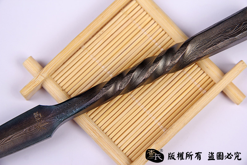 【作品简介】 本店商品均实物拍摄,细节清晰,可仔细比较。 【作品规格】 全长:17cm左右,柄长:10cm,刃长:6cm,刃宽:1.5cm,刃厚:0.6cm,重量:0.09kg左右。 【刃材工艺】 采用龙泉剑传统百炼钢工艺手工制作+高难度扭转打造,精美的锻造纹路,手工精细磨,禾字号出品 【作品赠品】 竹盒 证书 【其他事项】 手工产品,重量尺寸稍有误差,请以实物为准。