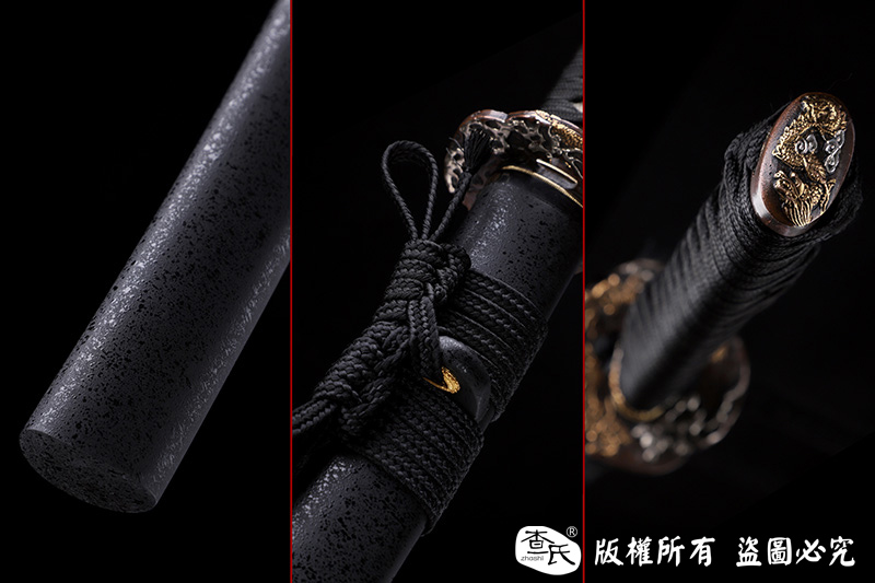 【作品规格】 全长:103cm左右,柄长:27cm,刃长:72cm,刃宽:3.5cm,刃厚:0.7cm,重量:不带鞘1.2kg左右,带鞘1.6kg左右。