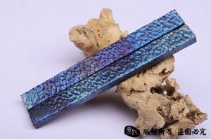 【作品简介】 本店商品均实物拍摄,细节清晰,可仔细比较。 【作品规格】 长:8.1cm左右,宽:2cm,厚:1cm,重量:单支0.15kg左右。 【刃材工艺】 钛合金手工雕刻烤蓝处理,不生锈,还可以作为礼品,收藏品,极有价值和档次-可以传承千年 【作品赠品】 竹盒 证书 布袋子 【其他事项】 手工产品,重量尺寸稍有误差,请以实物为准。