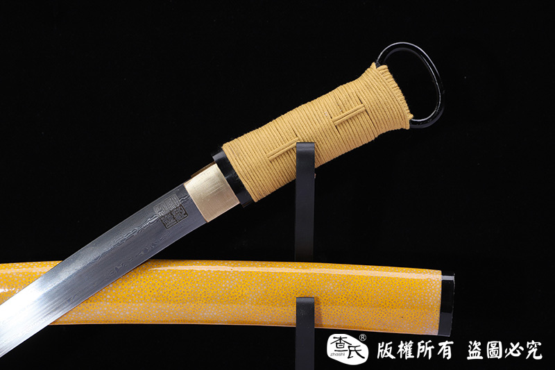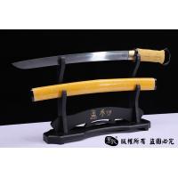 【作品简介】 本店商品均实物拍摄,细节清晰,可仔细比较。 【作品规格】 全长:62cm左右,柄长:15.7cm,刃长:42cm,刃宽:3.1cm,刃厚:0.7cm,重量:不带鞘0.55kg左右,带鞘0.75kg左右。 【刃材工艺】 【作品鞘材】 【作品装具】 【作品硬度】 HRC 【作品柄材】 【作品赠品】 锦盒 架子 证书 【其他事项】 手工产品,重量尺寸稍有误差,请以实物为准。 赠品里面的架子并不是图上的展示的架子,图片架子另外加180。