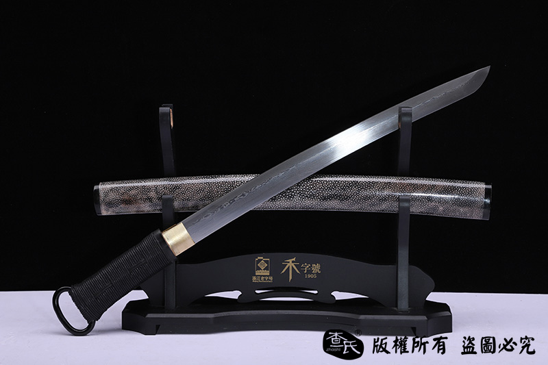 【作品简介】 本店商品均实物拍摄,细节清晰,可仔细比较。 【作品规格】 全长:61.6cm左右,柄长:15.3cm,刃长:42.7cm,刃宽:3.1cm,刃厚:0.7cm,重量:不带鞘0.59kg左右,带鞘0.78kg左右。 【刃材工艺】 【作品鞘材】 【作品装具】 【作品硬度】 HRC 【作品柄材】 【作品赠品】 锦盒 架子 证书 【其他事项】 手工产品,重量尺寸稍有误差,请以实物为准。 赠品里面的架子并不是图上的展示的架子,图片架子另外加180。