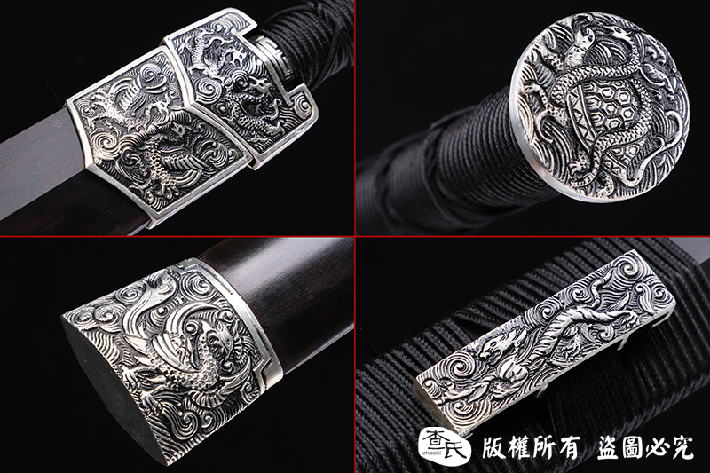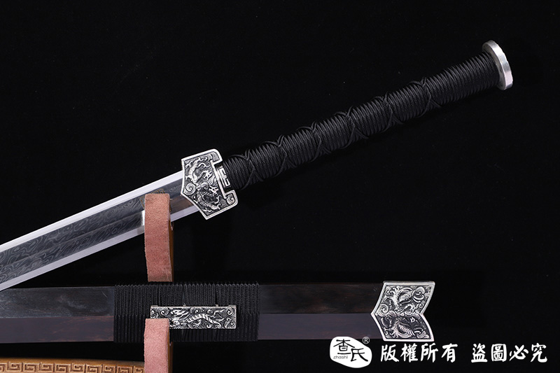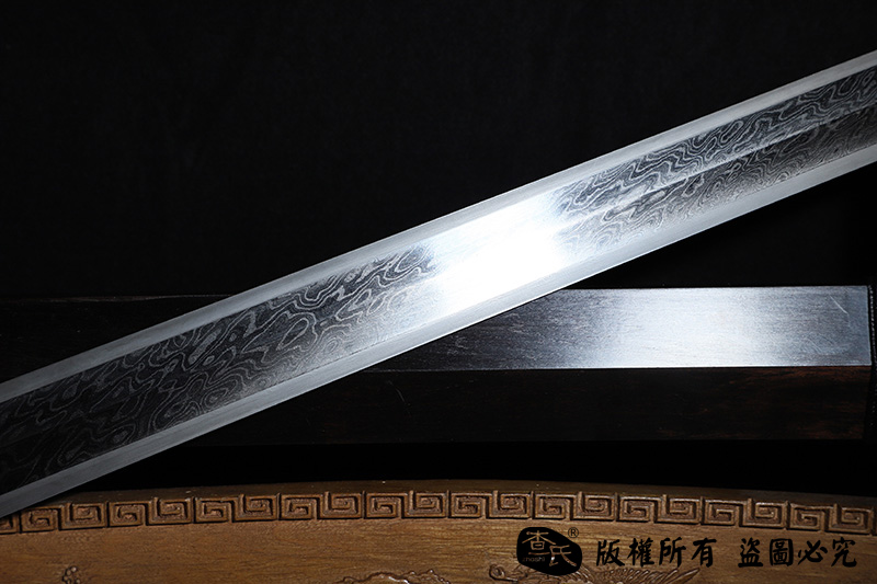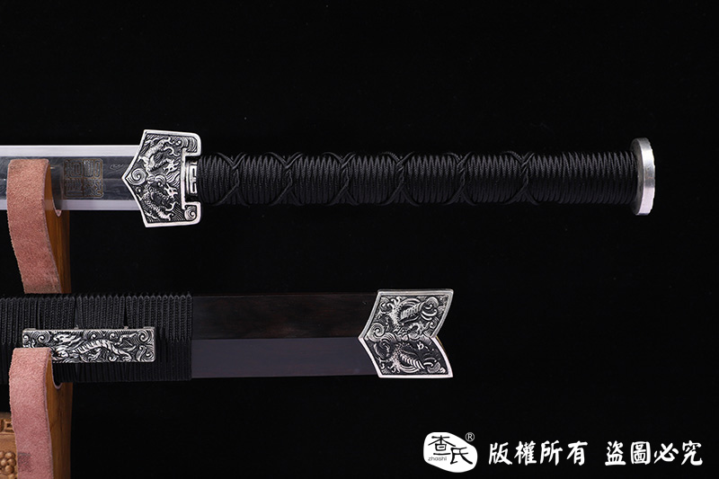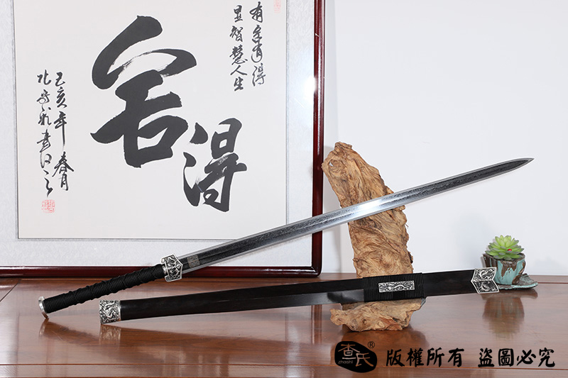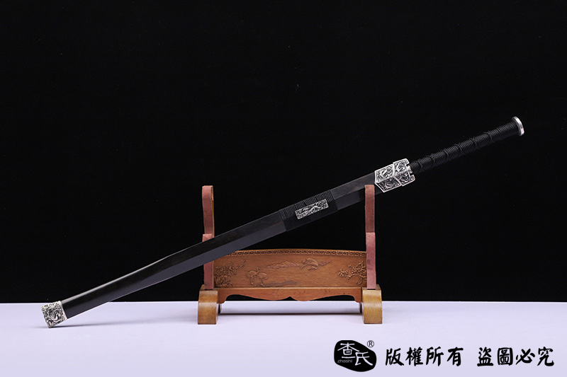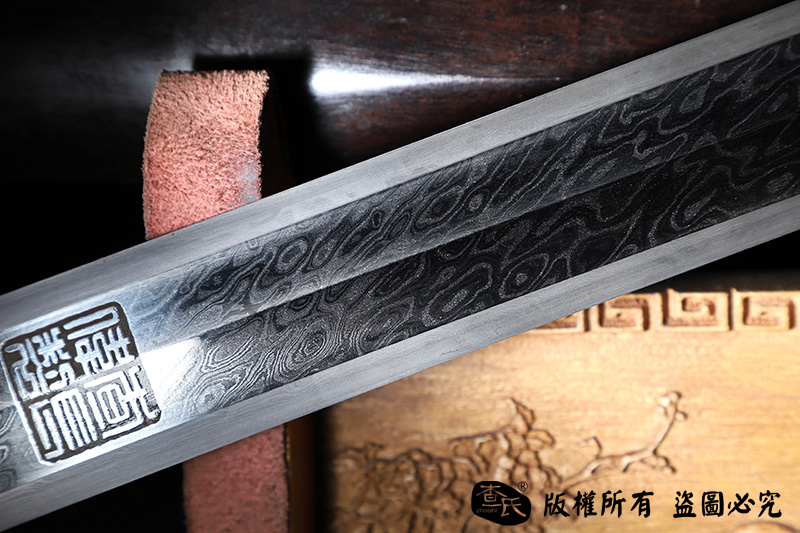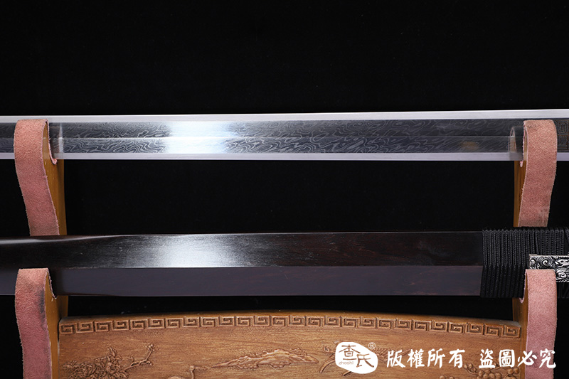【作品规格】 全长:108cm左右,柄长:26cm,刃长:77cm,刃宽:3.7cm,刃厚:0.8cm,重量:不带鞘1.2kg左右,带鞘1.9kg左右。
