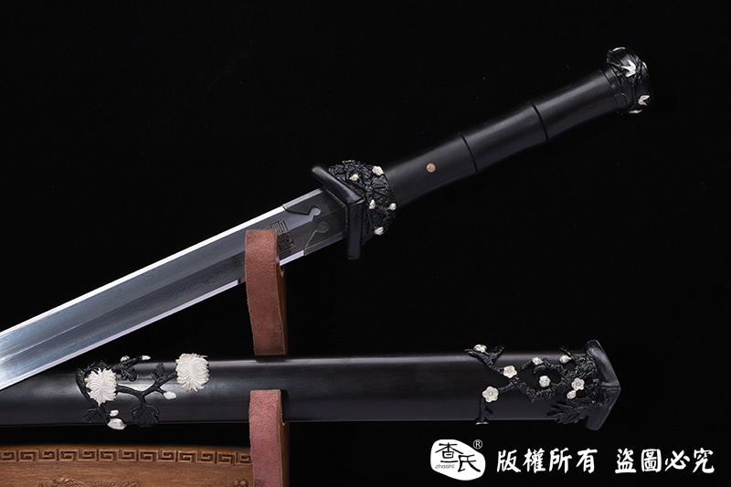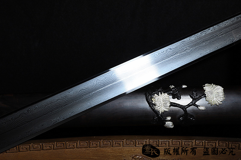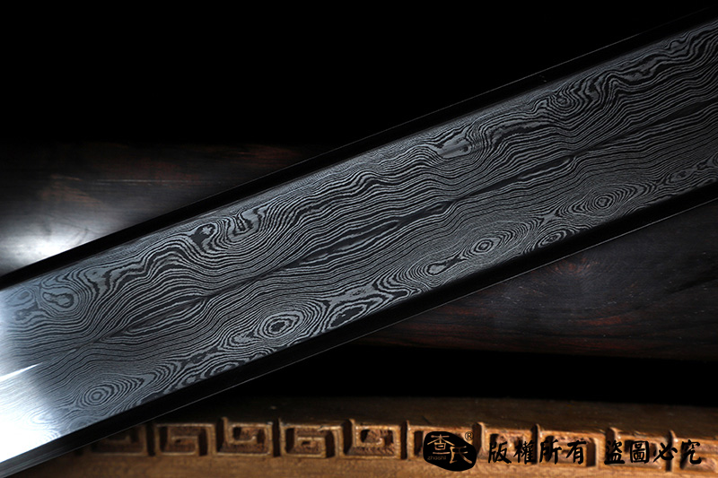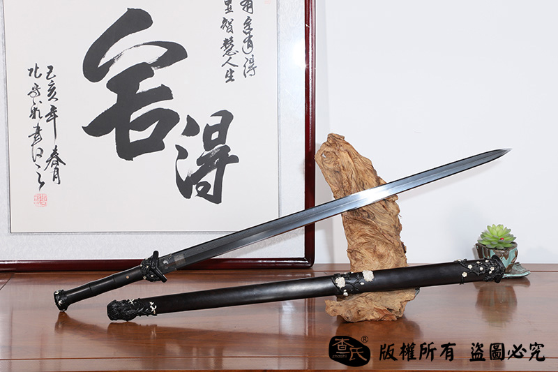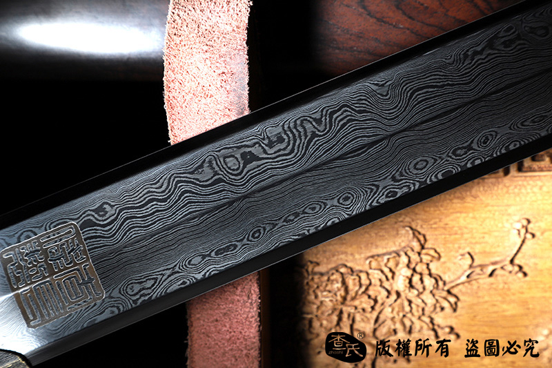 【作品规格】 全长:101cm左右,柄长:18cm,刃长:76cm,刃宽:3.5cm,刃厚:0.8cm,重量:不带鞘1.2kg左右,带鞘2.0kg左右。