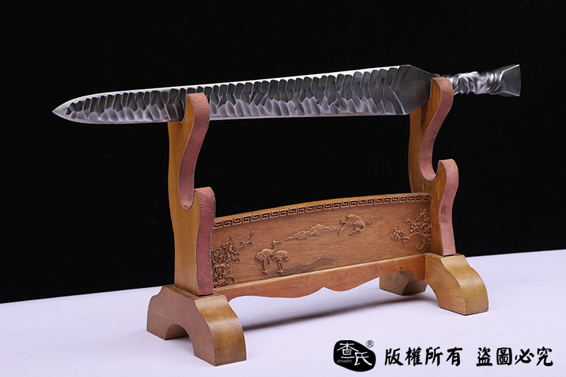 【作品简介】 本店商品均实物拍摄,细节清晰,可仔细比较。 【作品规格】 全长:64.2cm左右,柄长:14cm,刃长:46.4cm,刃宽:6.1cm,刃厚:1.26cm,重量:1.87kg左右。 【刃材工艺】 【作品鞘材】 【作品装具】 【作品硬度】 HRC 【作品柄材】 【作品赠品】 锦盒 架子 证书 【其他事项】 手工产品,重量尺寸稍有误差,请以实物为准。 赠品里面的架子并不是图上的展示的架子,图片架子另外加180。