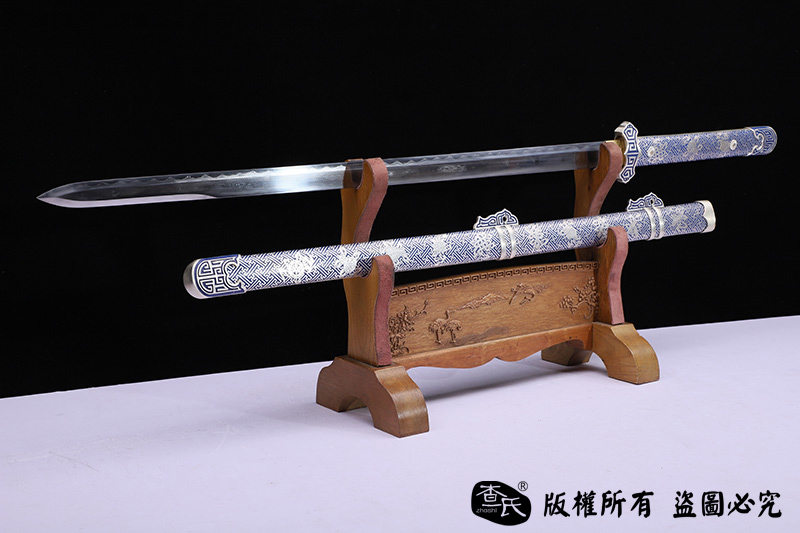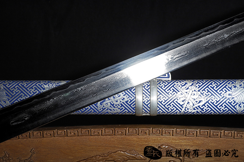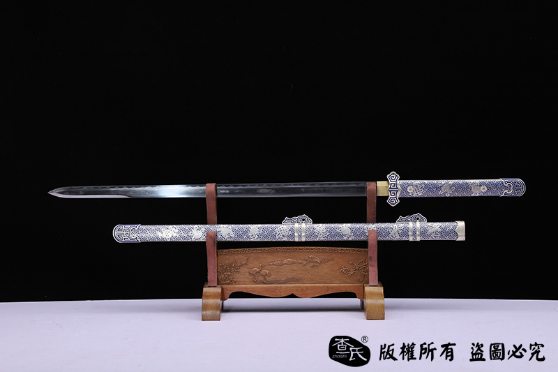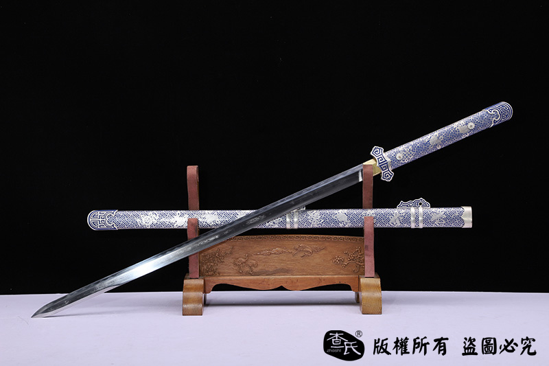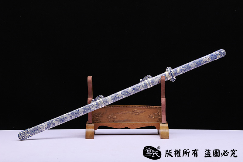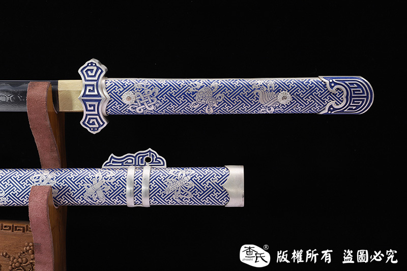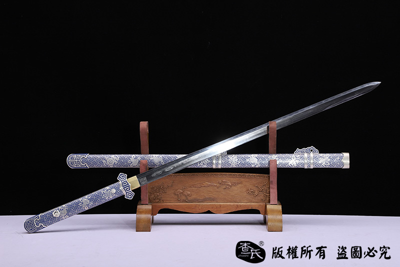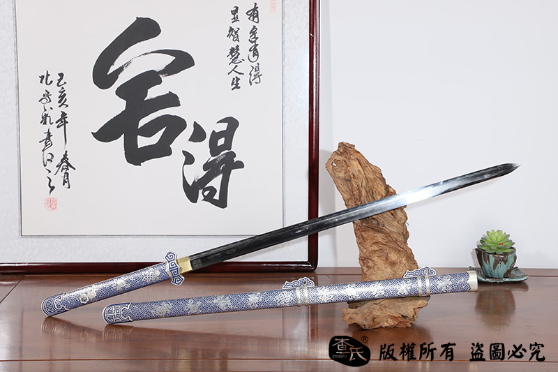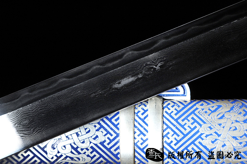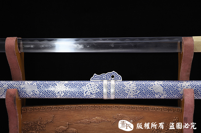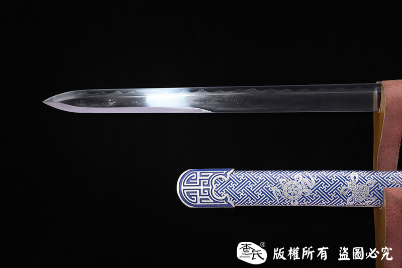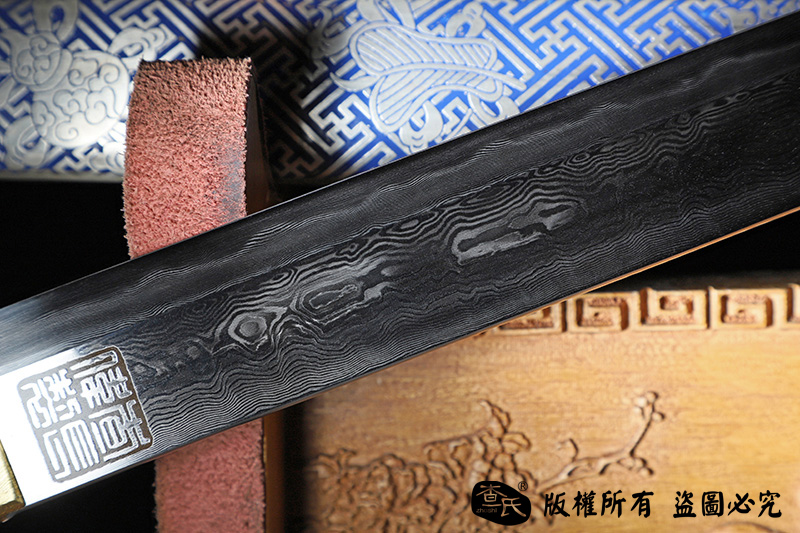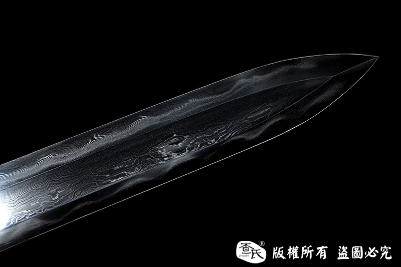 【作品规格】 全长:105cm左右,柄长:27cm,刃长:72cm,刃宽:3.2cm,刃厚:0.7cm,重量:不带鞘1.2kg左右,带鞘1.9kg左右。【刃材工艺】 禾字号手工锻造百炼钢,古法敷土烧刃热处理,手工精细磨,根部刻字:查长伟制