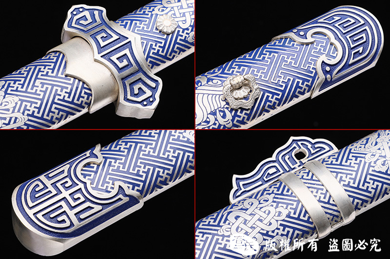【作品鞘材】 全铜刻万字纹镀银加合成大漆