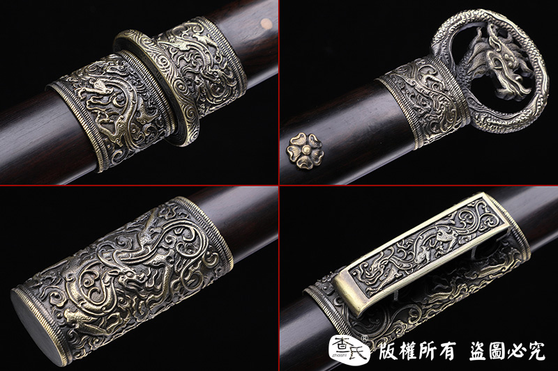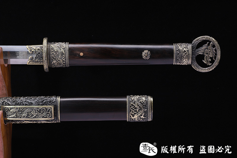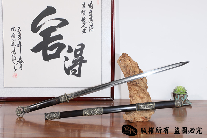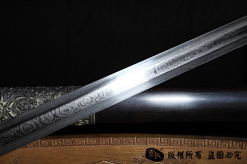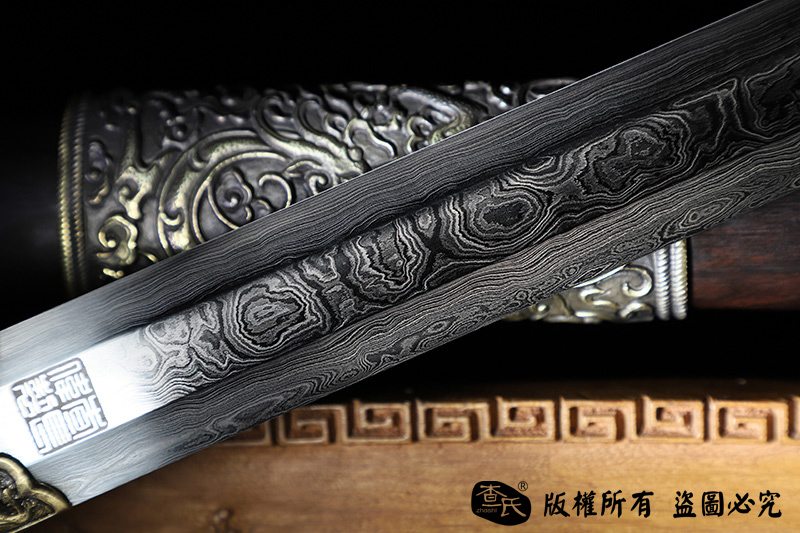 【作品规格】 全长:106cm左右,柄长:29cm,刃长:72cm,刃宽:3.2cm,刃厚:0.7cm,重量:不带鞘1.1kg左右,带鞘2.0kg左右。
