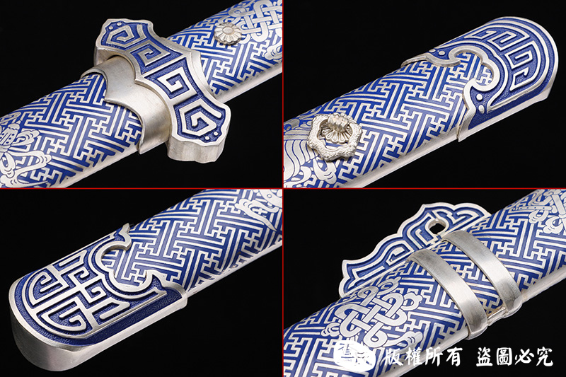 【作品鞘材】 全铜刻万字纹镀银加合成大漆